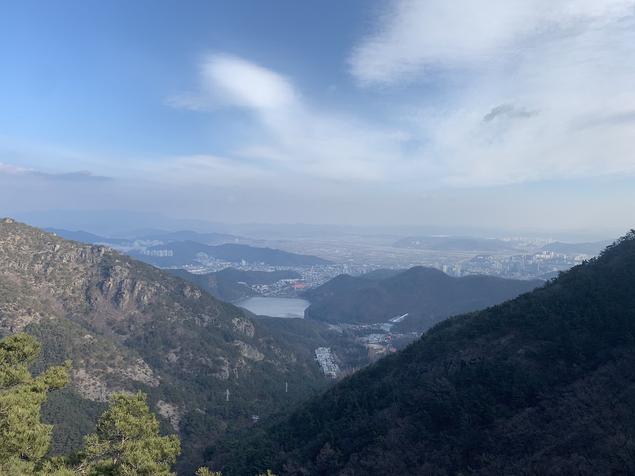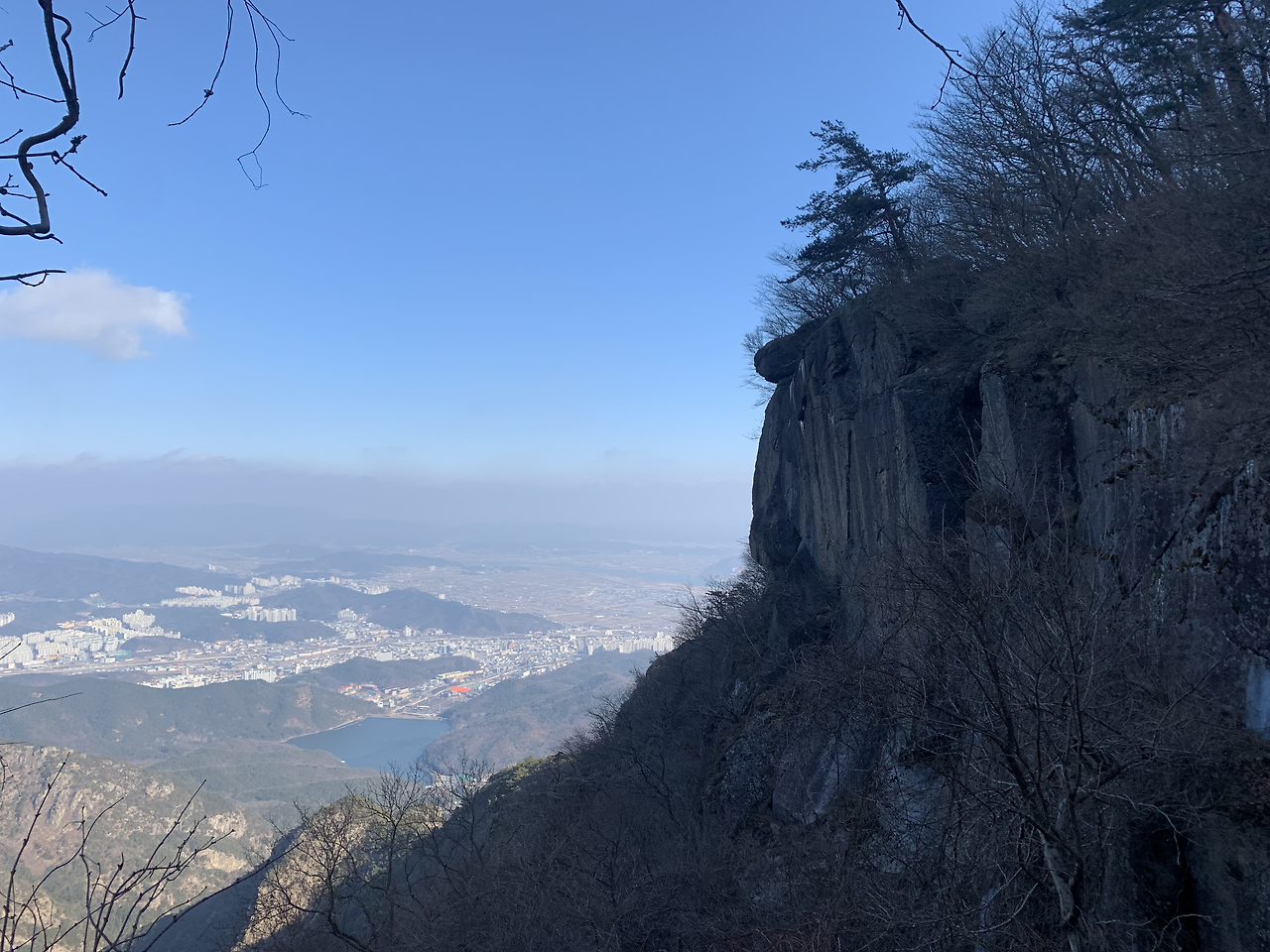 완만한 오르막길을 1킬로여 걷다가 대혜폭포를 마주했다. 떨어지는 물이 튀긴 자리가 모두 얼어붙어 장관을 이루던. 그런데 금오산은 아이들이 많이 오르기에 신기했다. 이 동네는 등산 조기교육을 시키나 하면서. 더 신기했던 건 슬리퍼를 신고 등산을 하는 어린이를 두 명이나 본 것. 위험해 보였는데 등산의 달인인 건지 알 수가 없었다.