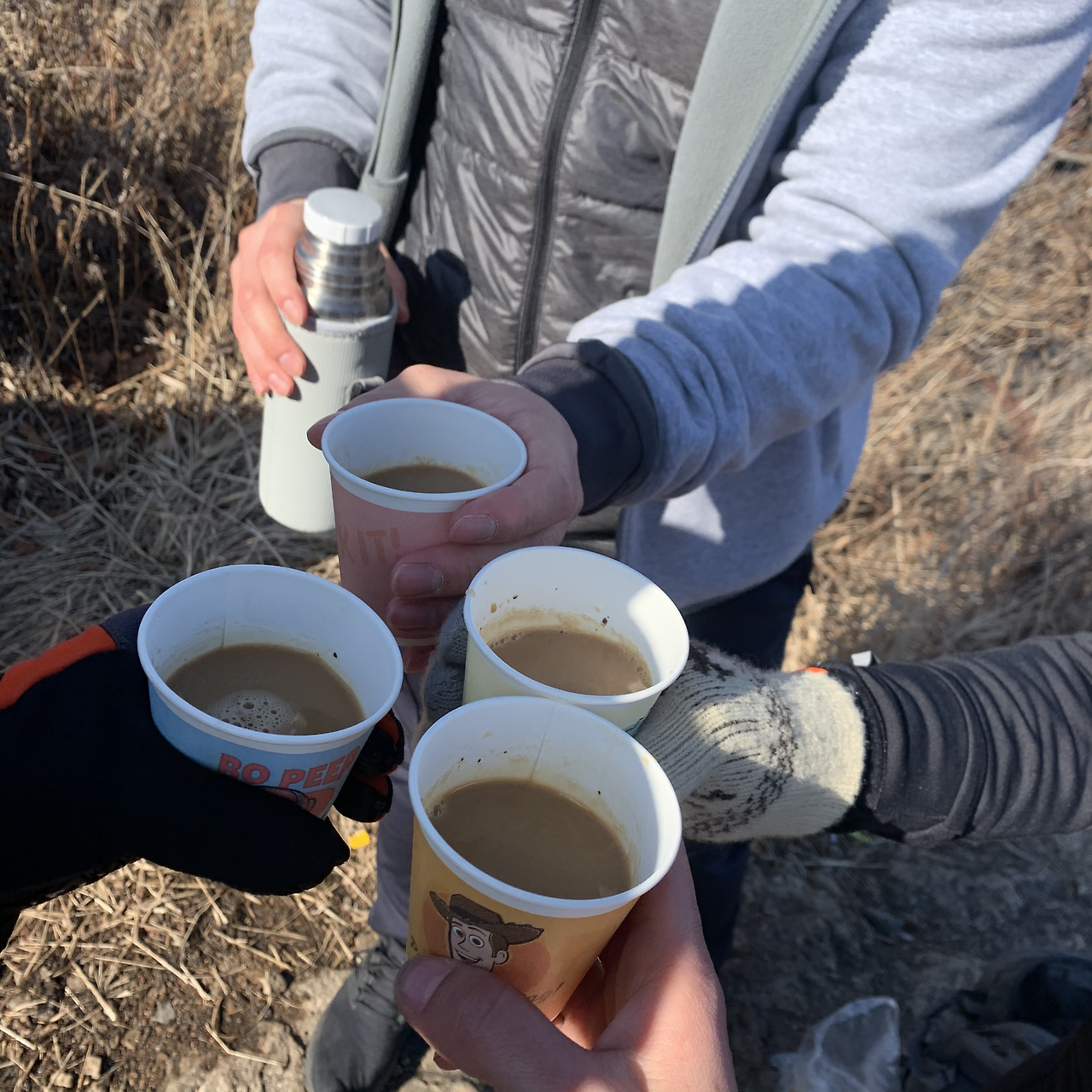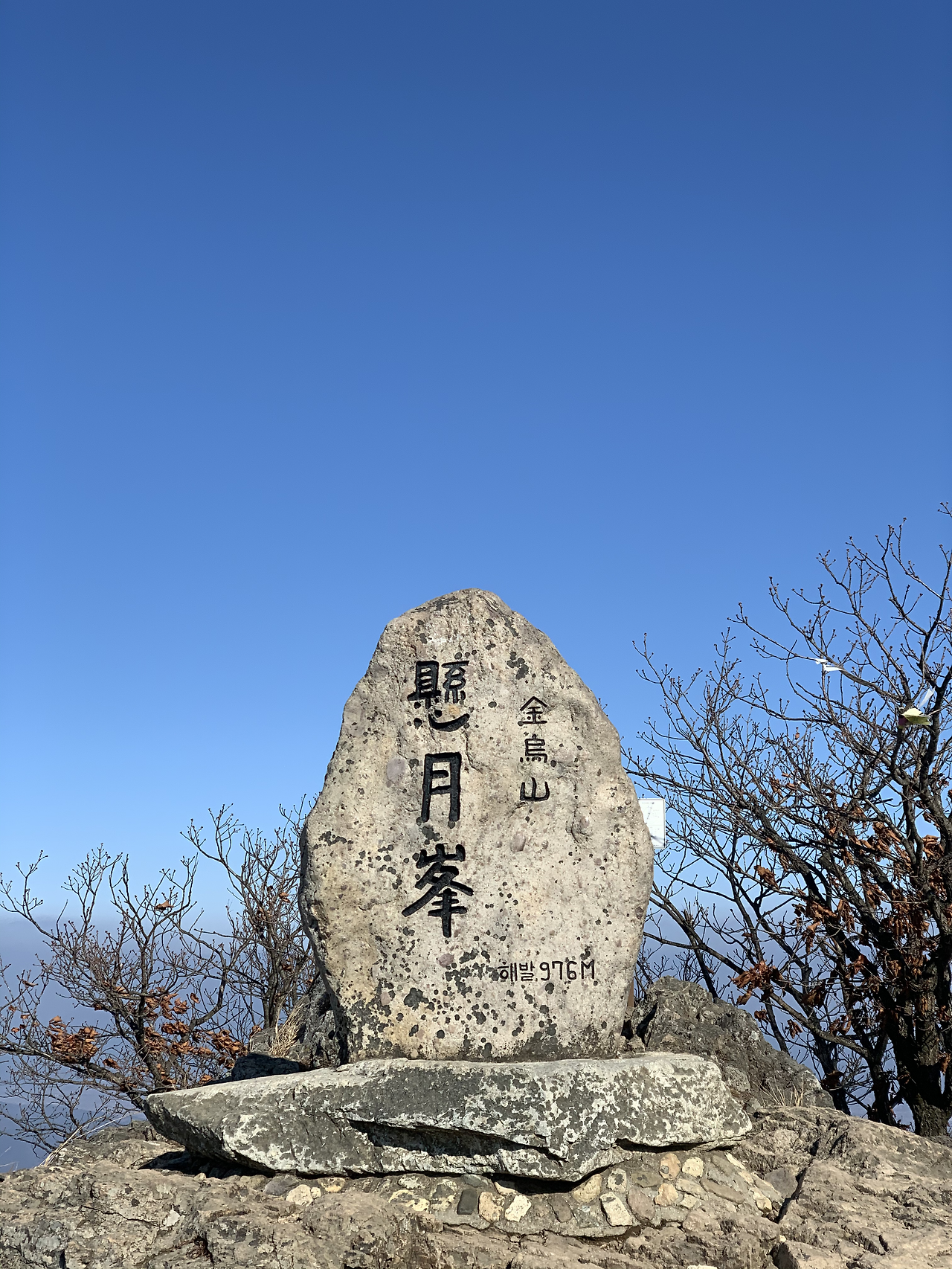 정상에 당도하니 지독한 칼바람이 우리를 맞이했다. 상상 이상으로 춥고 바람이 매서웠다. 사진은 거의 찍는 둥 마는 둥 하고, 바람을 피해 바위 뒤에서 바나나와 초코팝콘, 그리고 대망의 하이라이트 맥심커피를 마셨다. 평소 믹스커피를 전혀 먹지 않는 나인데 해발 976m 고도 정상 위에서 먹는 그 맛은 어찌나 좋던지. 오늘의 음식들이 생각나서라도 또 산을 오를 것 같다.