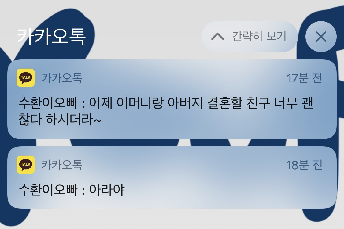 30분이나 일찍 도착한 우리. 수성못 전경이 보이는 창가 자리엔 이미 사람들로 꽉 차 있어서 안쪽 원형 테이블에 자리했다. 곧 큰아버지 큰어머니가 들어오시는 게 보였고 그와 나는 입구로 나가 맞이했다.