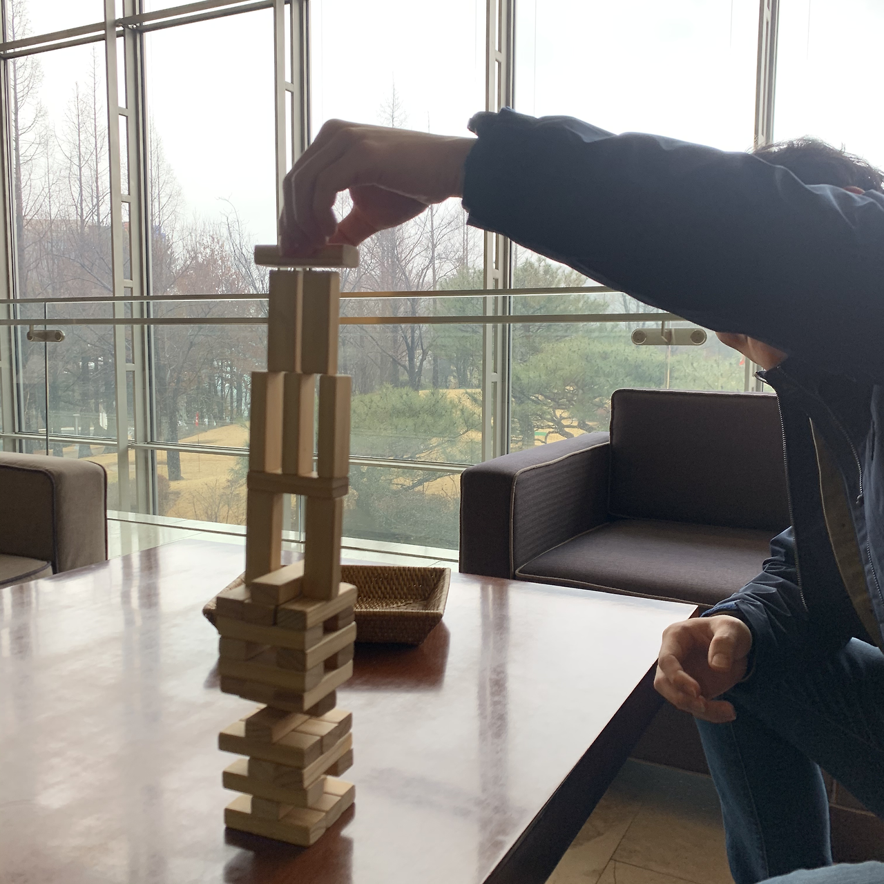 느지막이 늦잠을 자고 일어나 조식을 먹으러 내려왔다. 예전 맛에 기대에 차 있었는데 왜 못해졌나요(..) 맛보다 가짓수가 너무 줄어 먹을게 많이 없었다. 아쉬워x100. 조식을 다 먹고 일어나 로비에 있던 젠가를 시작했다. 지는 사람이 이기는 사람 아이스크림 사주기로 했는데 처참히 내가 실패,