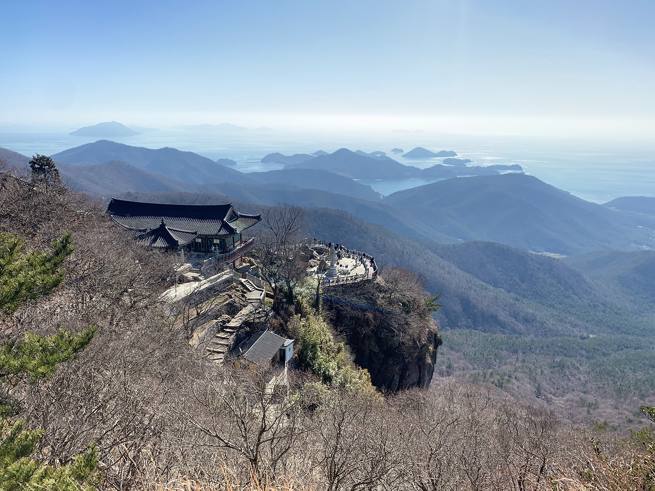 그런 나물비빔밥일지언정 배가 고팠던 우리는 컵라면과 함께 한그릇 먹었다. 마지막으로 보리암에 들러 '코로나 종식되게 해 주세요.' 빌고 내려왔다. 마음 같아서는 좋아하는 돌창고프로젝트에 가서 미숫가루 마시며 전시도 보고, 독일마을에 들러 인생 슈니첼도 먹고 싶지만 마음 꾹꾹 눌러 담고 곧장 돌아가는 것으로. 다시 33번 국도의 하행길에 올랐다.