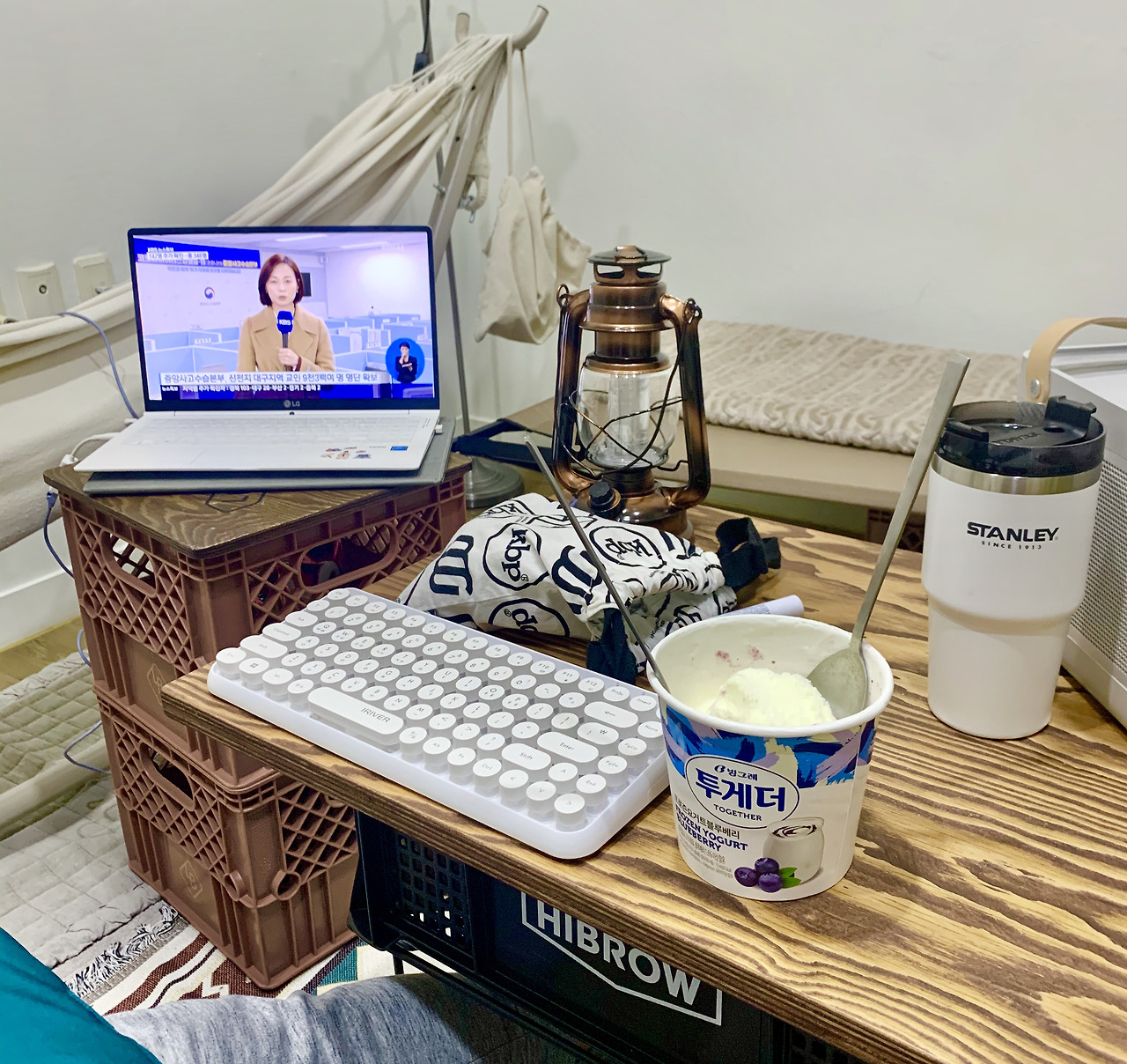 치킨을 시킬까 하다가 간단하게 닭강정을 사 먹기로 했다. 집 근처에는 편의점이 총 세 곳. 세븐일레븐, 지에스25, 씨유 모두 300m 이내에 다 있는 우리집은 편세권^^ 그런 김에 편의점 세 곳을 다 가보기로 하였다. 1편의점 1메뉴를 사들고 돌아와 우리는 늦은 저녁을 즐겼다. 영화 백두산을 보려 했지만 A급 배우들로 B급 영화를 만들었다는 후기가 처음부터 오버랩되어 금세 끄고 노마하우스에서 찍은 웨딩사진을(8천장 가운데 20장) 골랐다.