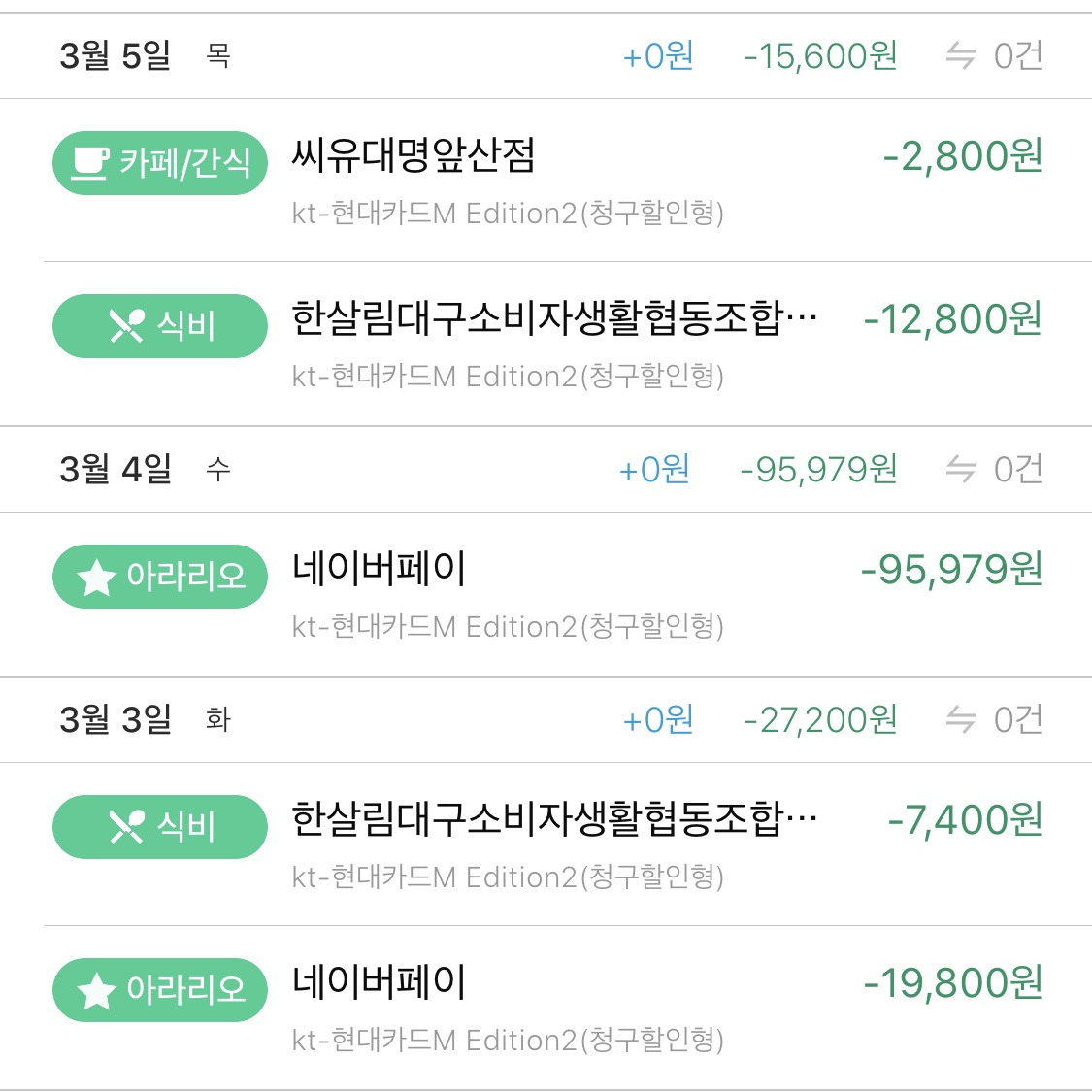 뱅크샐러드로 이번 달 들어 지출내역을 살폈다.