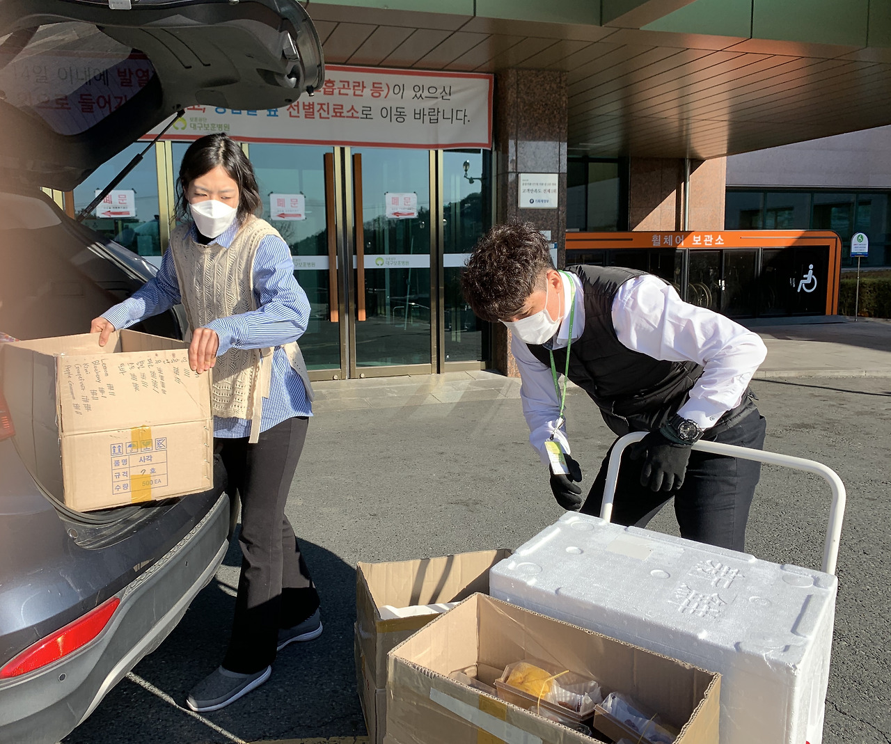 대구의료원이나 동산병원, 경대병원보다 상대적으로 구호물품과 간식이 많이 부족하다는 대구 보훈병원으로 향했다. 이웃 사장님께 가게를 잠시 맡기고.