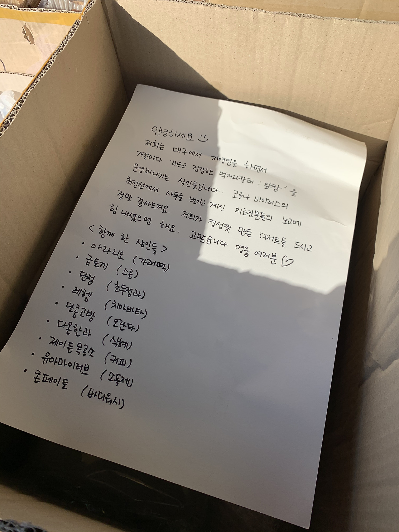 물으셨고, 또 단골분은 "이런 거 있으면 소문내세요!라거나 "다음엔 저도 손 보탤게요. 불러만 주세요"