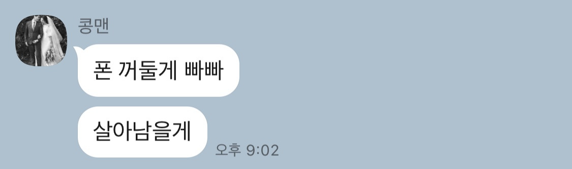 이 글을 쓰는 순간에 그에게서 온 카톡.