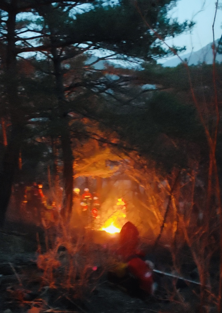 담당 지역인 청송에서 발생한 산불로 그는 점심시간에 부랴부랴 출동했다. 그리고 화재 발생 10시간 가량 지난 지금도 그는 여전히 현장에 있다.