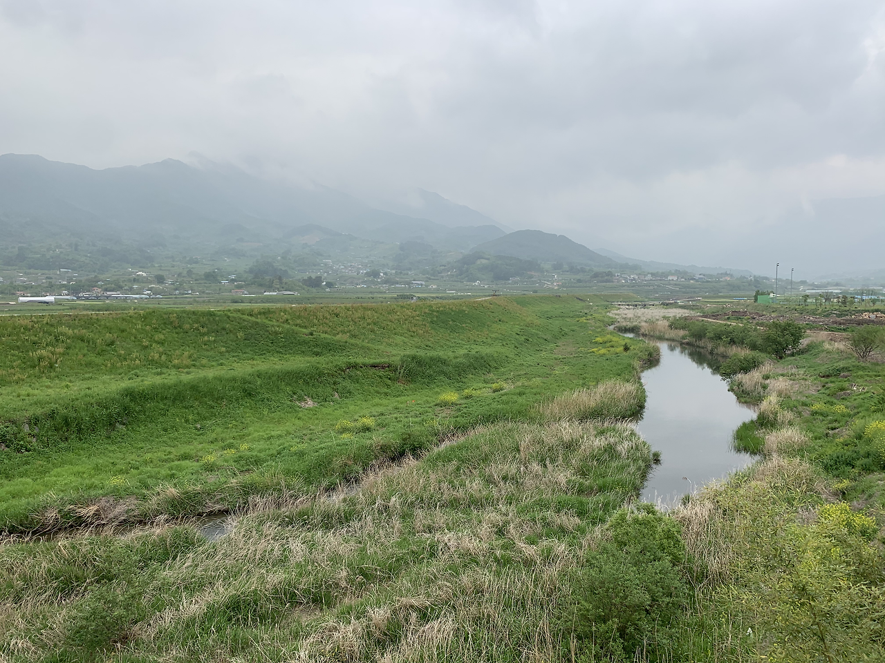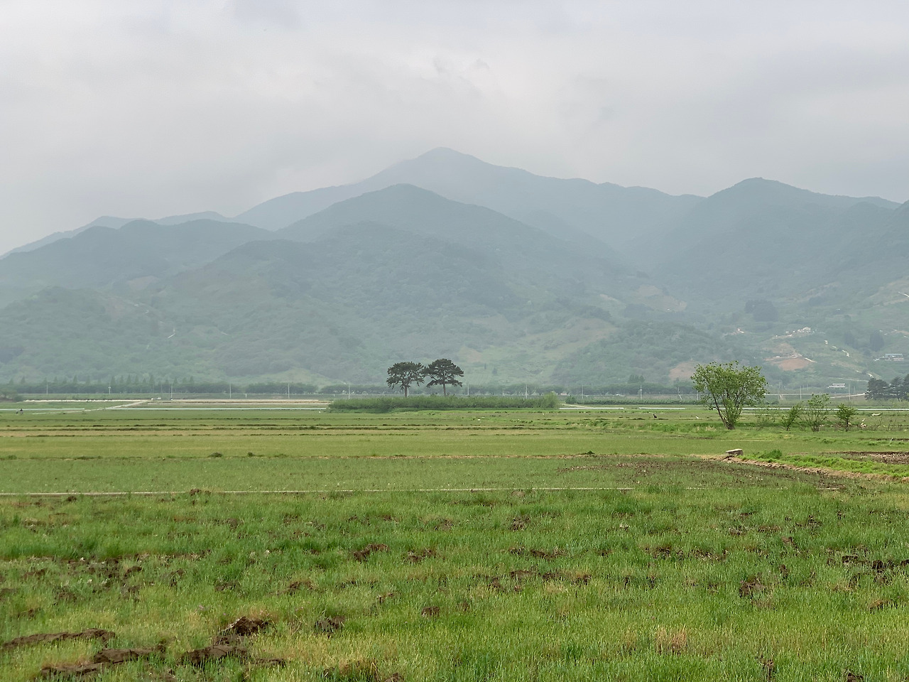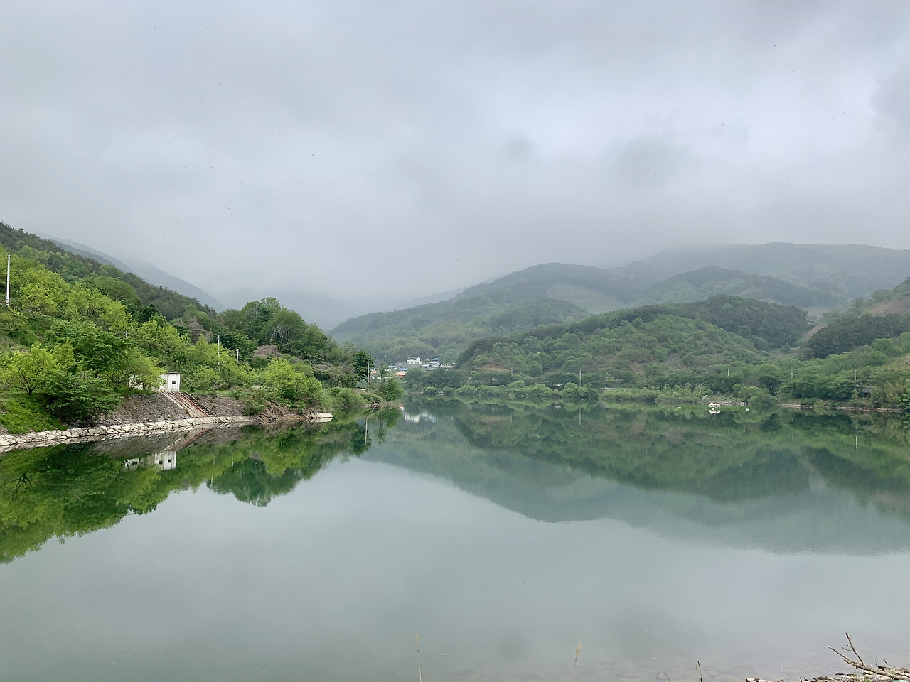 이제부터 남은 6/7 힘내서 걸어봅시다. 흐려서 시야가 좋지 않아 아쉬워하던 중 대신 흐리기 때문에 반영이 환상적인 적량저수지를 만났다. 제방을 따라 걷는데 아까 마신 막걸리의 취기가 올라 살짝 알딸딸했다. 기분 좋은 취함이다.