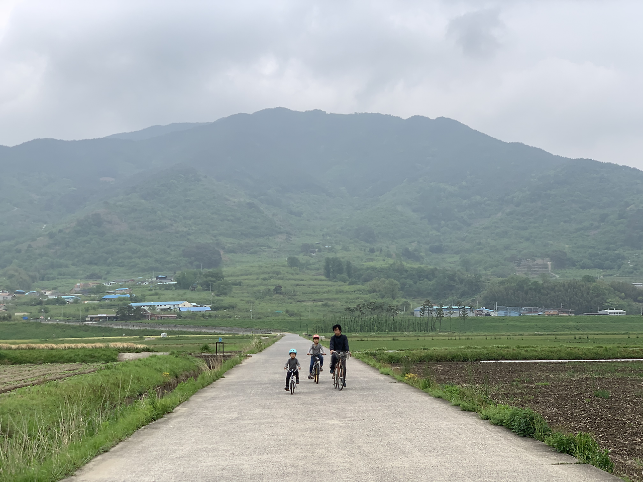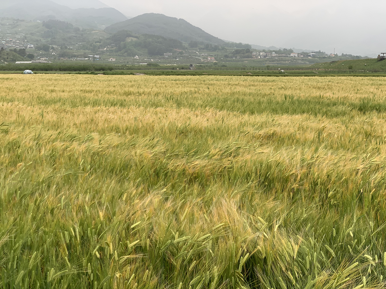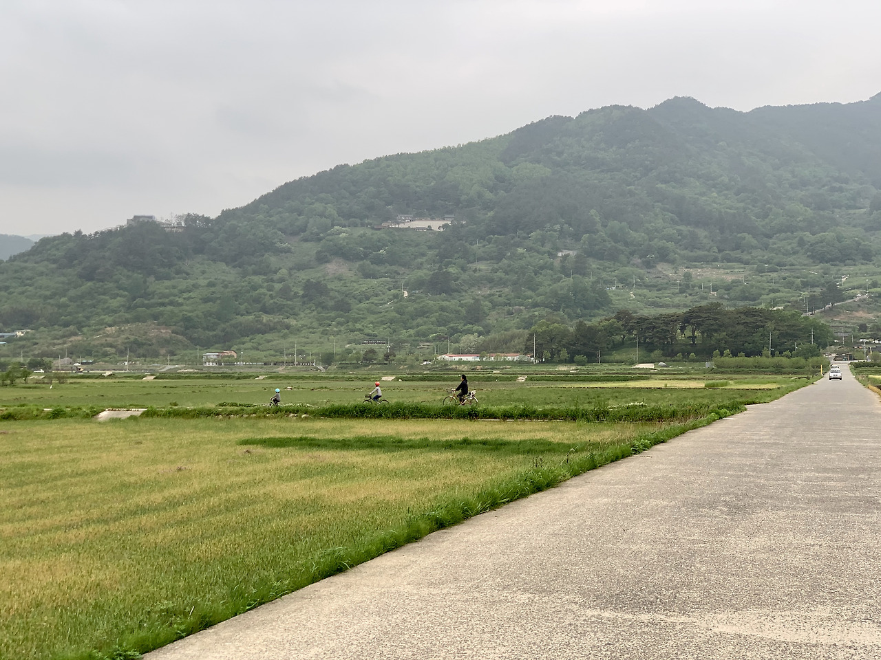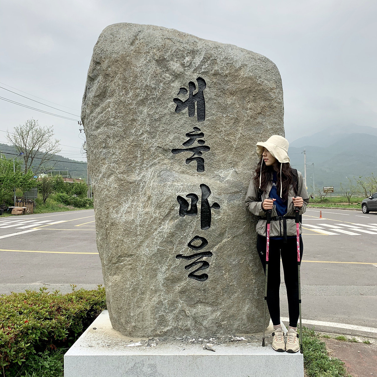 마지막 완주 인증샷을 찍고, 슈퍼 할머니가 말해주시는 "버스 곧 와" 라는 말을 믿고 기다리는데 그가 찾아본 정보에 의하면 버스는 아직 한시간 후에나 온단다. 그러니 조금만(?) 더 걸어가서 자주 오는 버스정류장으로 가자는 그. 난 또 그렇게 그에게 낚여 1.7km를 더 걷게 되었다^^ 결과적으로는 마주하고 싶던 부부송도 보고, 청보리밭도 만나고, 하동 배파이 맛도 보고, 오늘의 걸음 3만 보도 달성하고 이래저래 좋았다.