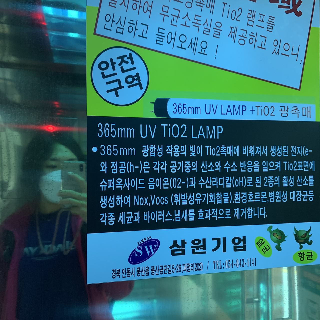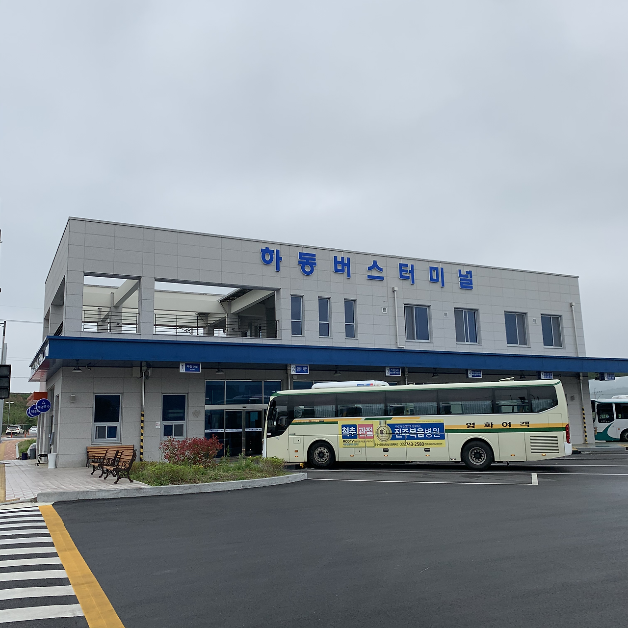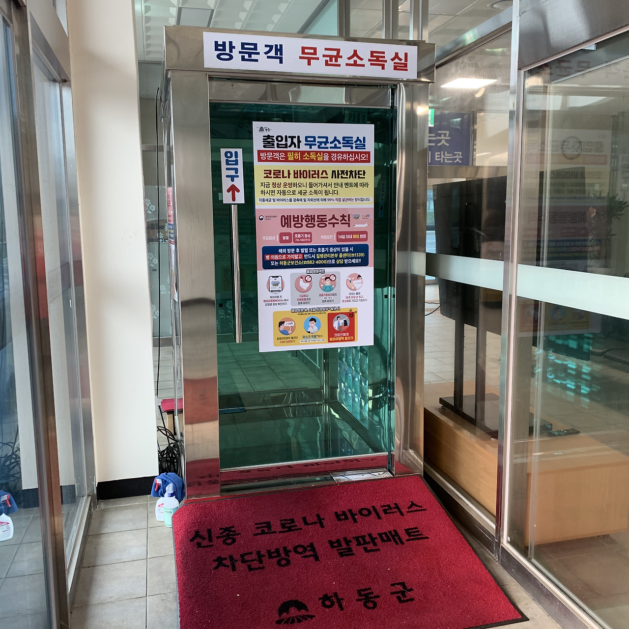 편의점에 들러 커피와 간식거리를 좀 사고 하동버스터미널에 갔다. 차를 세워두고 들어서는데 막아선다. "소독하고 들어오세요." 바로 방문객 무균소독실. 전화부스같은 곳에 들어가서 15초간 살균소독을 당하는(?) 기분이 묘했다.