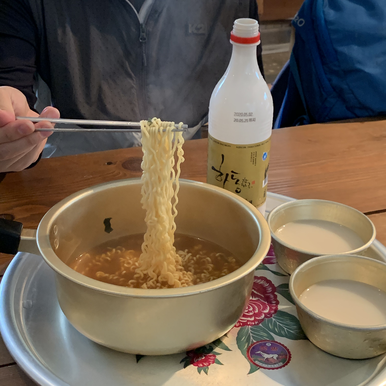 양은냄비로 끓인 라면에, 막걸리 한잔은 정말 기가 막혔다. 좋아하는 몇가지 막걸리를 제치고 단박에 우리 인생막걸리가 된 '하동막걸리'. 아침 열시에 막걸리 두병이라니....ㅋㅋㅋㅋㅋㅋㅋㅋ대단해 정말- 새참사랑방에서의 기부금 포함 만원의 행복한 시간을 꽉꽉 채워 보내고 나왔다.