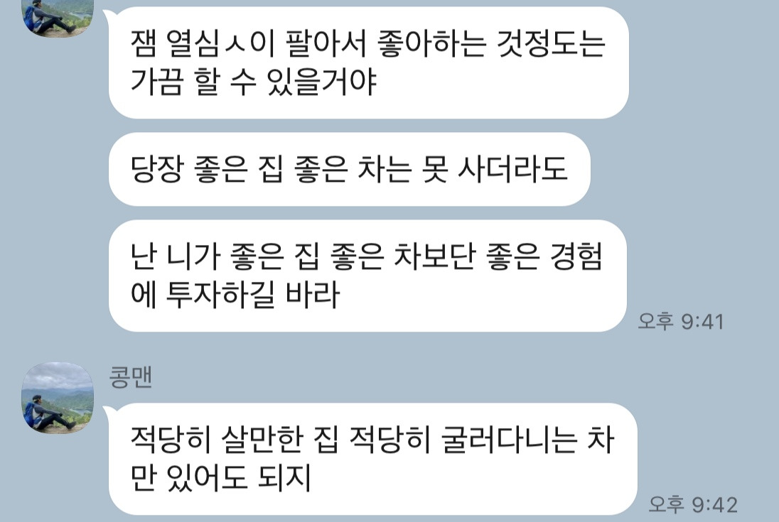 이야기가 샜는데 다시 돌아가서 오늘 문득 들었던 생각이, 내게 돈이 많다면 내 인생은 풍요로워졌을 거라는 생각이 들었다. 물론 가진 재산이 아닌 경험으로. 당장 경비행기 조종사 자격증을 취득했을 것이고, 비용 때문에 그만두었던 폴댄스도 계속했을 것이며, 프리다이빙도 지속했을 것이며, 승마도 배우고, 인제 가서 서킷도 하고, 용인 가서 스카이다이빙도 했을 거다. 오래된 밴이나 버스를 개조해서 캠핑을 하며 살았을 거다. 보헤미안 같은 삶을 꿈꿨으니. 할 수 있는 온갖 액티비티와 아웃도어를 섭렵하며, 유랑자처럼 살겠지. 지금도 이번 프로젝트 끝나면 가장 먼저 나 자신에게 셀프선물을 주려하는 것도 물건 구입이 아닌 돈이 들어가는 경험치 +1 획득이니.