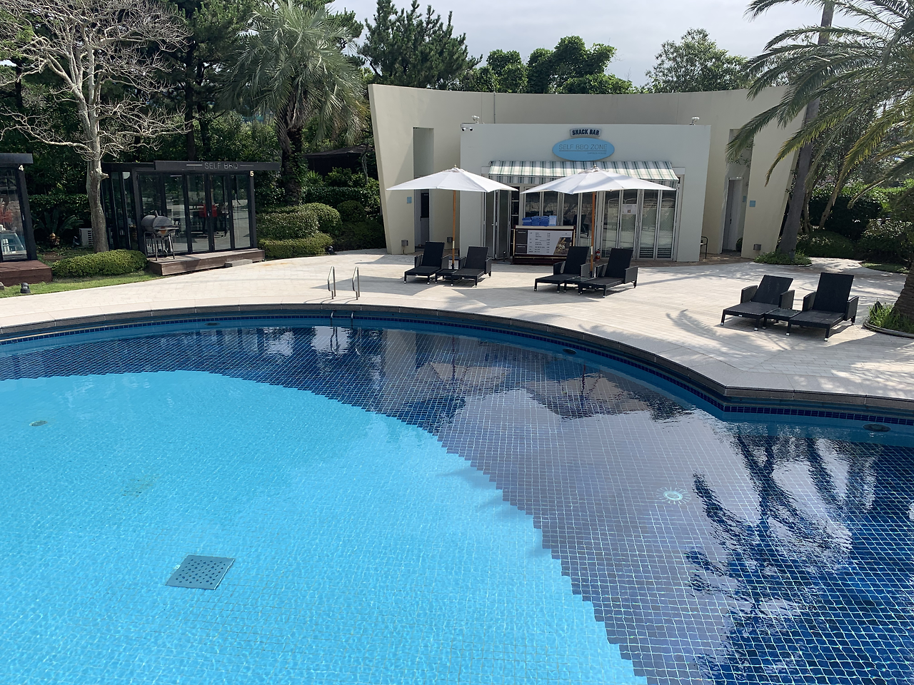 새벽 5시에 잠시 깼을 때만 하더라도 주룩주룩 하던 창밖은 조식 먹으러 갔더니 해 쨍쨍 하늘은 블루!