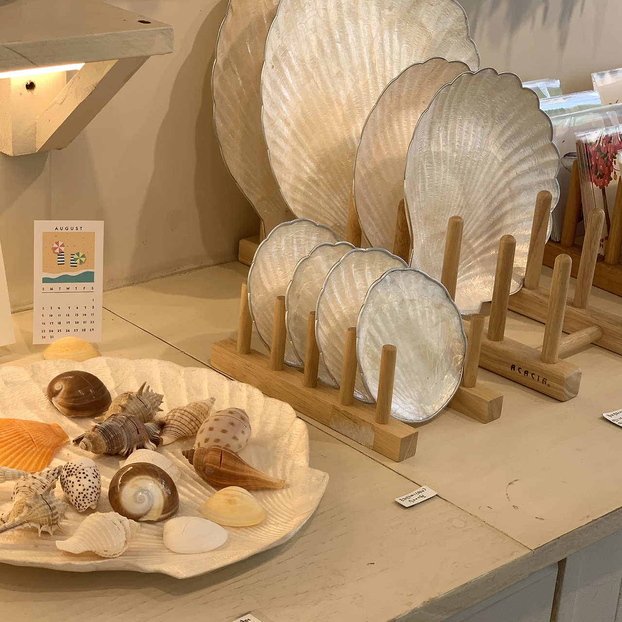 조개트레이 2개와 스노우볼, 키체인가방, 텀블러, 돌하르방 에코백, 조개거울, 파인애플오프너, 조개와 불가사리 마그넷, 위빙, 모빌, 키링, 차량용방향제, 파도그림 등등을 구했다.