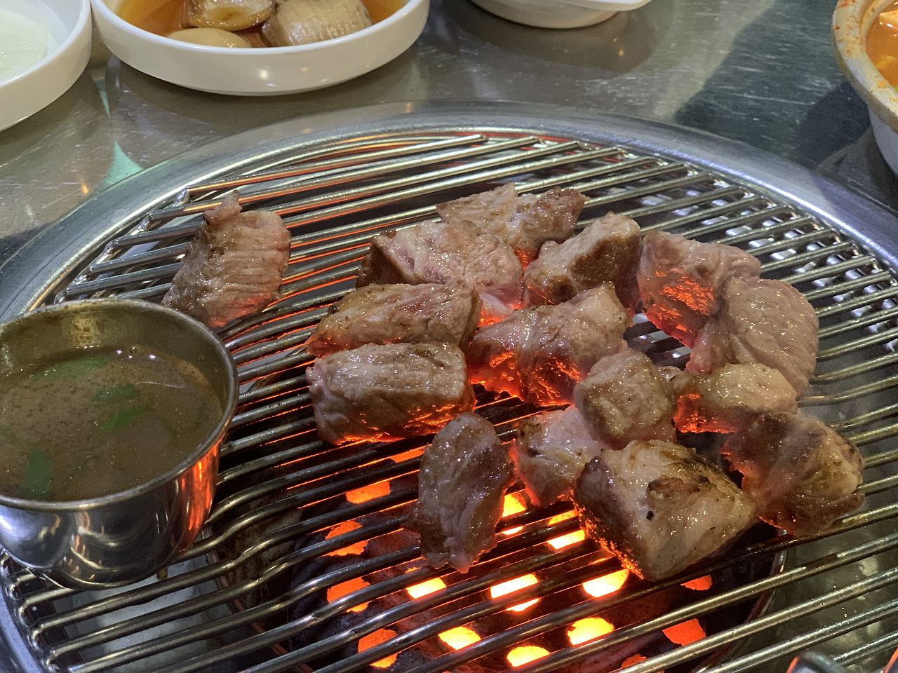 하나하나 세밀하게 구워서 맛있게 먹을 수 있는 방법을 일러주시는데 결혼식의 연장선같이 대접받는 기분였다. 스테이크 저리가라