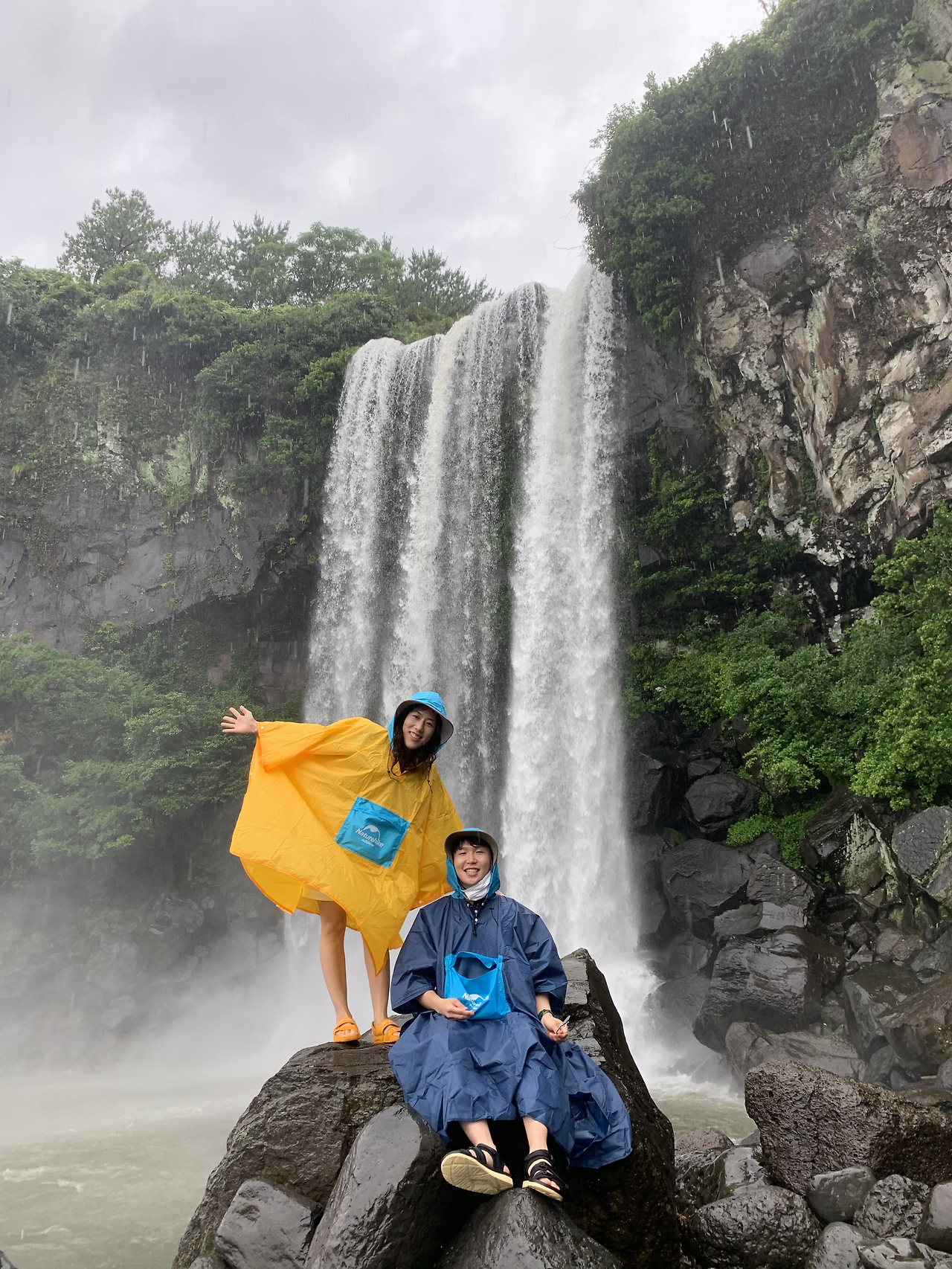 노부부가 잘 가꿔둔 차밭 서귀다원가서 우비커플로 총총 쏘다니다가, 마지막코스로 비 오면 꼭 가야 한다는 엉또폭포로 갔다. 입구에 들어서는데 엄청난 차와 사람들과 경찰들. 이거 무어지...? 안 왔으면 어쩔 뻔했나. 어마어마하게 쏟아지는 물줄기가 나이아가라 이과수 빅토리아 저리가라였다. 이제 숙소로 들어가쟈. 가는 길에 저녁으로 먹을 전복치킨과 막걸리 두병(제주도 유산균 막걸리&보리막걸리)을 구입했다. 귤중옥이라는 이곳은 주인아저씨가 잘 가꿔둔 귤밭을 뒷마당으로 하는 펜션이었는데 느낌이 좋았다. 이 얼마만의 치킨과 떡볶이와 막걸리냐며. 먹고 마시고 창 너머로 비가 그치고 또 해가 들려는 것 같길래 산책하기로, 아니 바닷가까지 걸어가자고 졸랐다. 무려 4.8km 한 시간이 조금 넘는 거리라며 그가 반대했지만 감행. 그렇게 힘든 시간이 될 줄은 몰랐다. 왕복 두 시간. 이만보가 넘은 거리. 신행에서 국토대장정이 웬 말이라며 힣 돌아와 그는 씻지도 못한 채 소파에 쓰러져 자고 나는 그의 다리 아래 깔려 오도가도 못하고 있다가 겨우겨우 깨워 씻고 그렇게 길었던 제주섬에서의 3일 차 여정 마무리 : )
