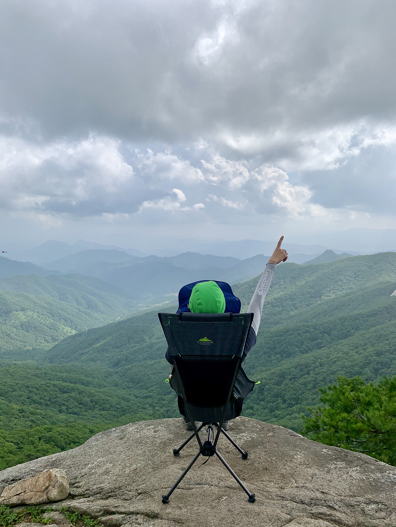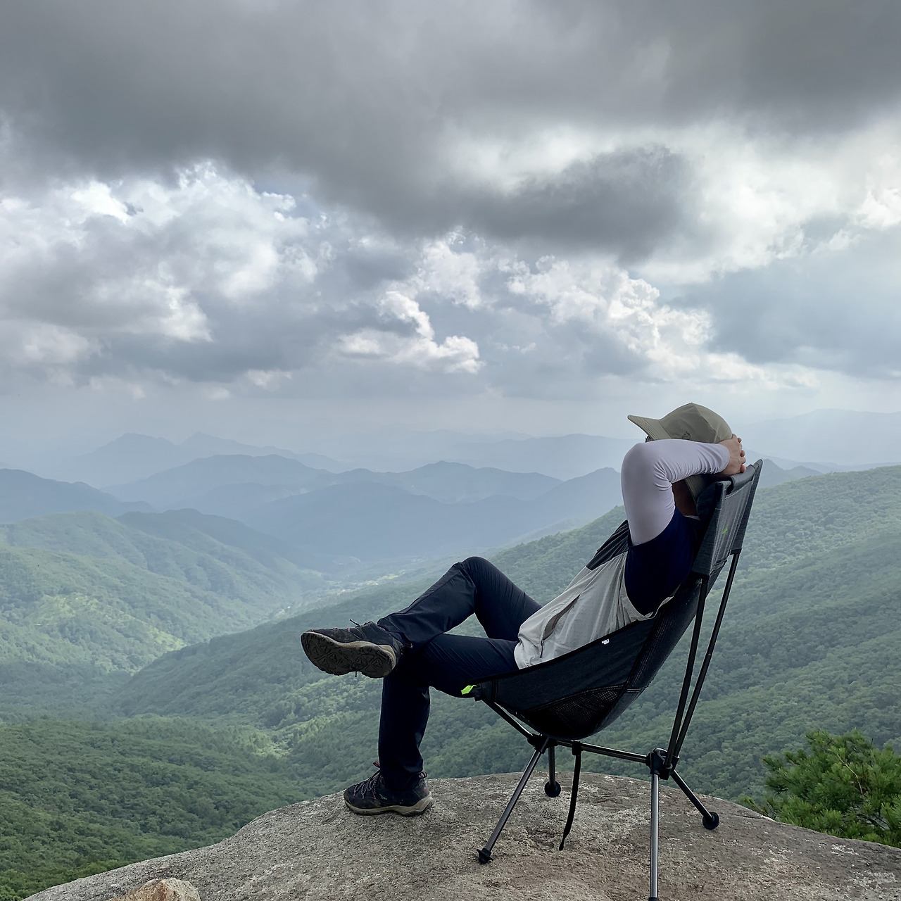 그와 난 가방에 하나씩 짊어지고 온 캠핑의자를 조립해 앉았다. 디딤돌 위에 두고 앉으니 신선놀음이 따로 없다. 자리를 정리하고 막 일어나려는데,