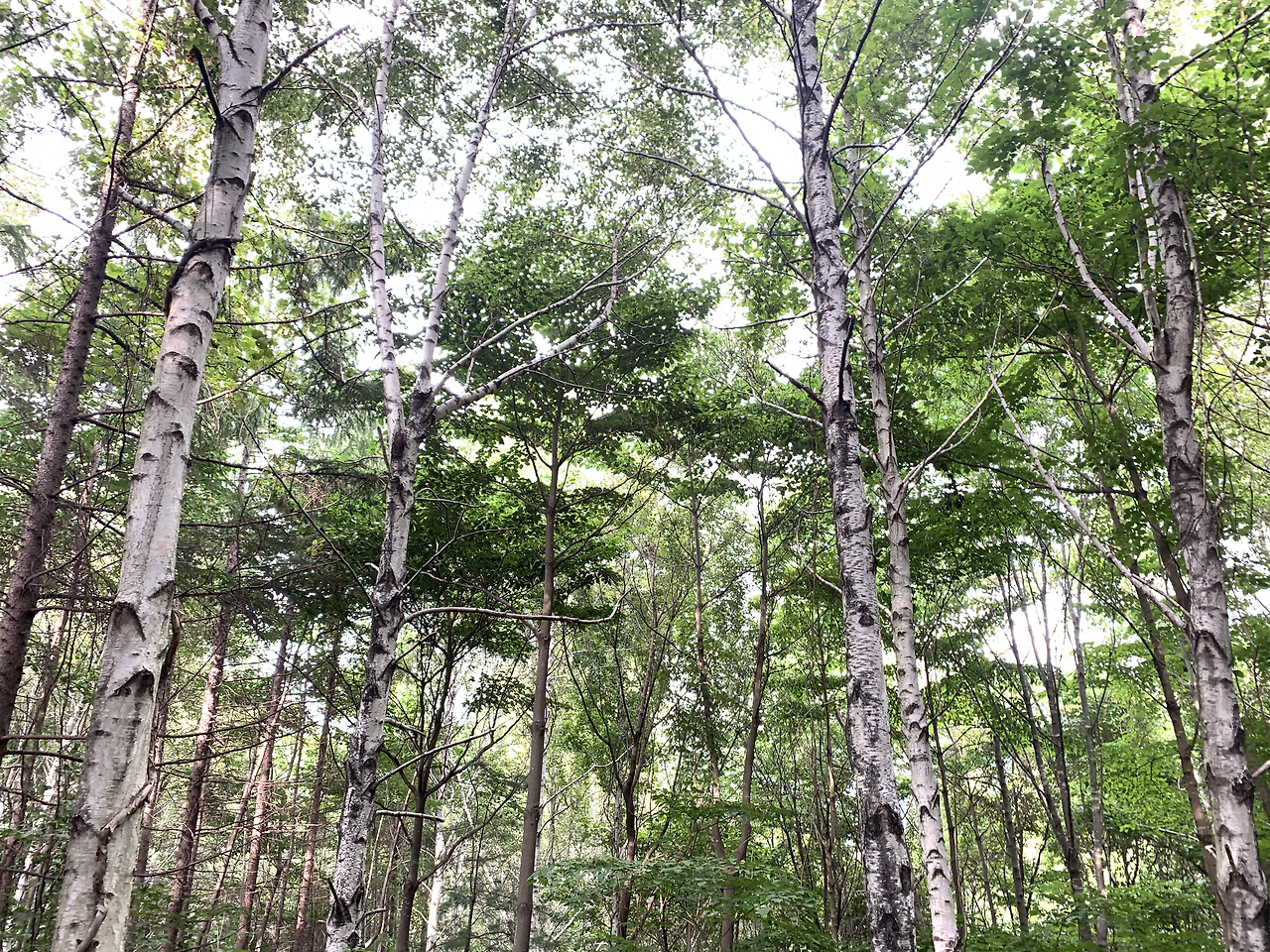 키에 육박할 정도로 무성하게 자란 조릿대들을 지나고, 또 한참 내려오다가 좋아하는 자작나무숲을 마주했다. 불에 탈 때 자작자작 소리를 낸다고 해서