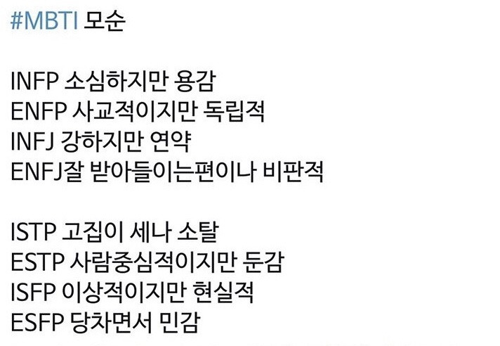 • 엔프피는 차분하고 안정된 사람이 좋다고 한다