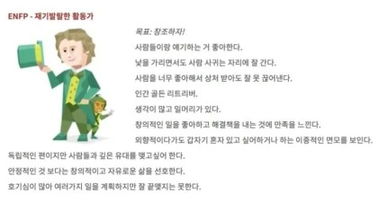• 예술가적 기질이 다분하며 무한한 가능성을 가지고 있는 엔프피