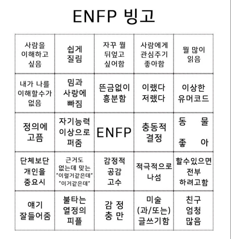 • 엔프피는 밝아 보이지만 자신만의 깊은 어둠이 존재한다