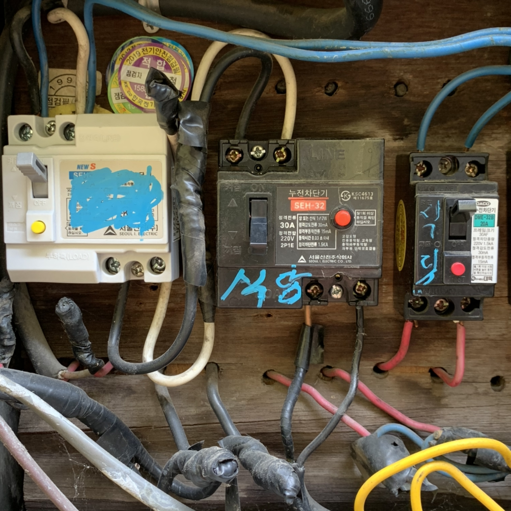 라고 한다. 근처 전업사를 찾아 통화를 했다. 현장일 하고 있던 기사님이 여러 가지 해보라는 대로(플러그 모두 뽑기, 가스보일러 콘센트도 뽑기, 그리고 다시 차단기 올리기 등) 시도를 했지만 소용없는 건 매한가지였다.