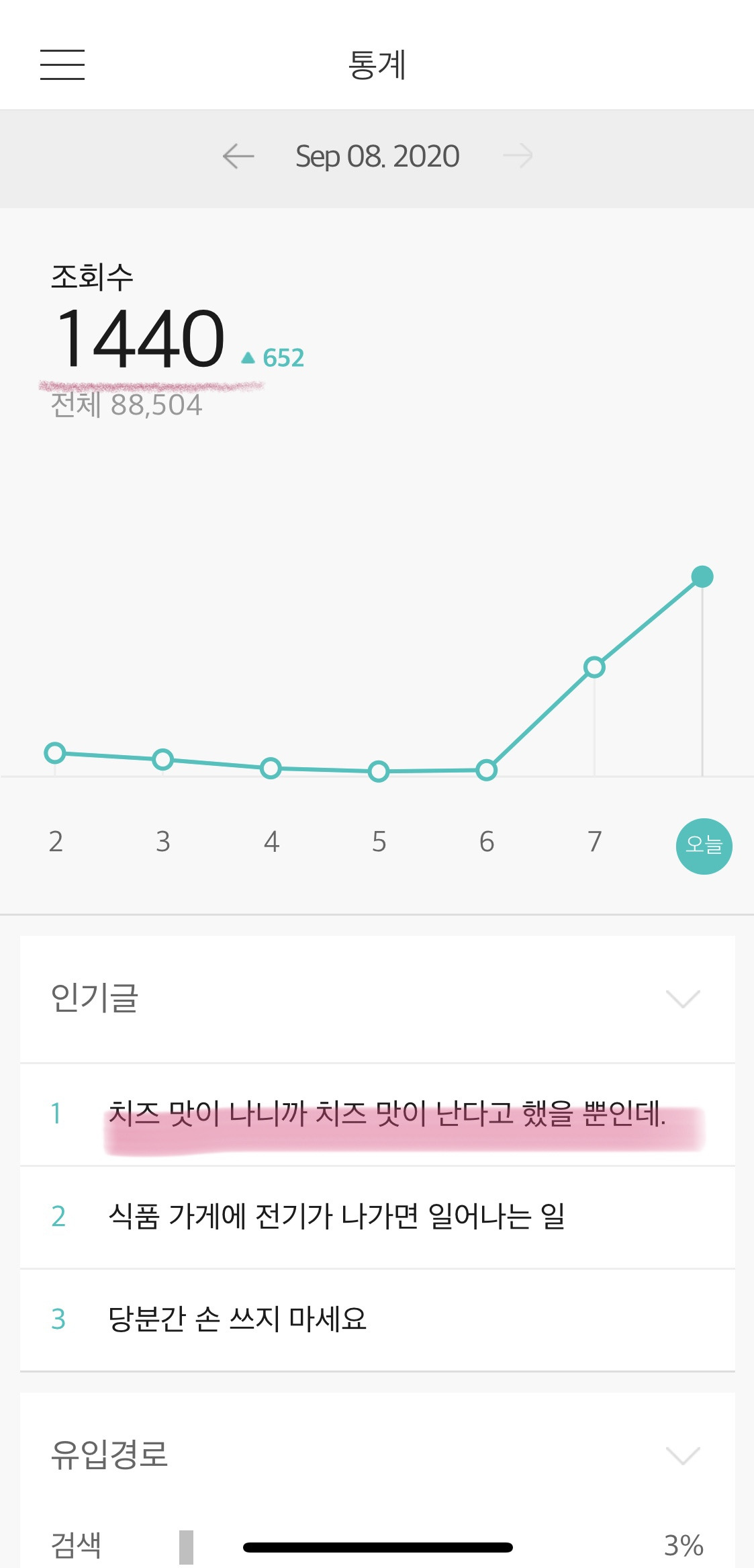 이번이 3번 째인가 4번 째 조회수 폭증이다. 그런데