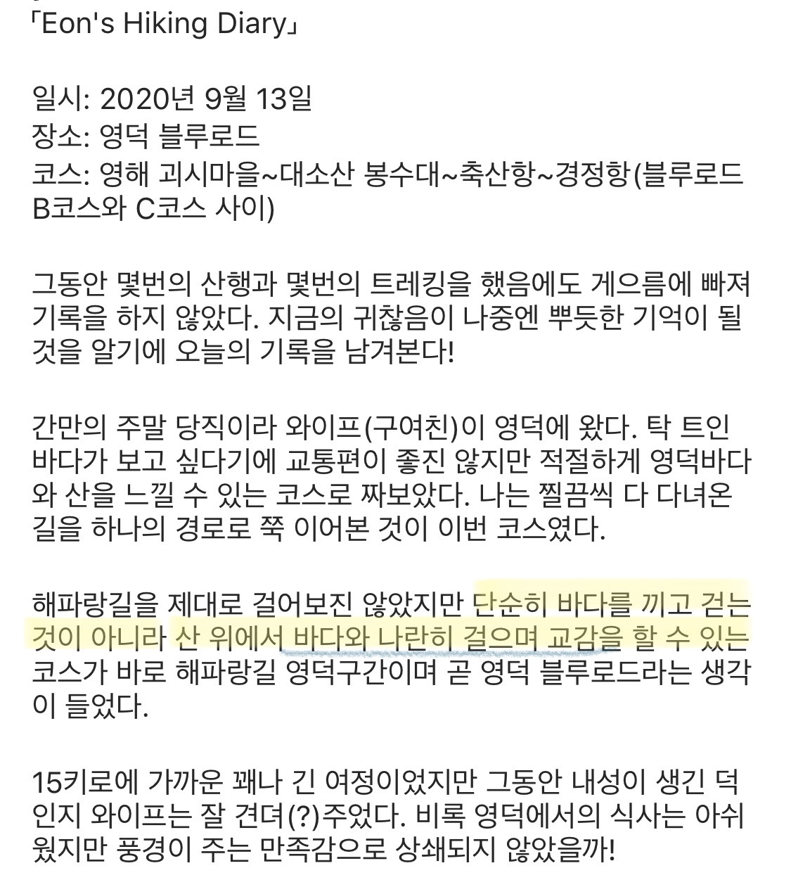 영덕해파랑길, 블루로드 B~C코스 걷던 중.