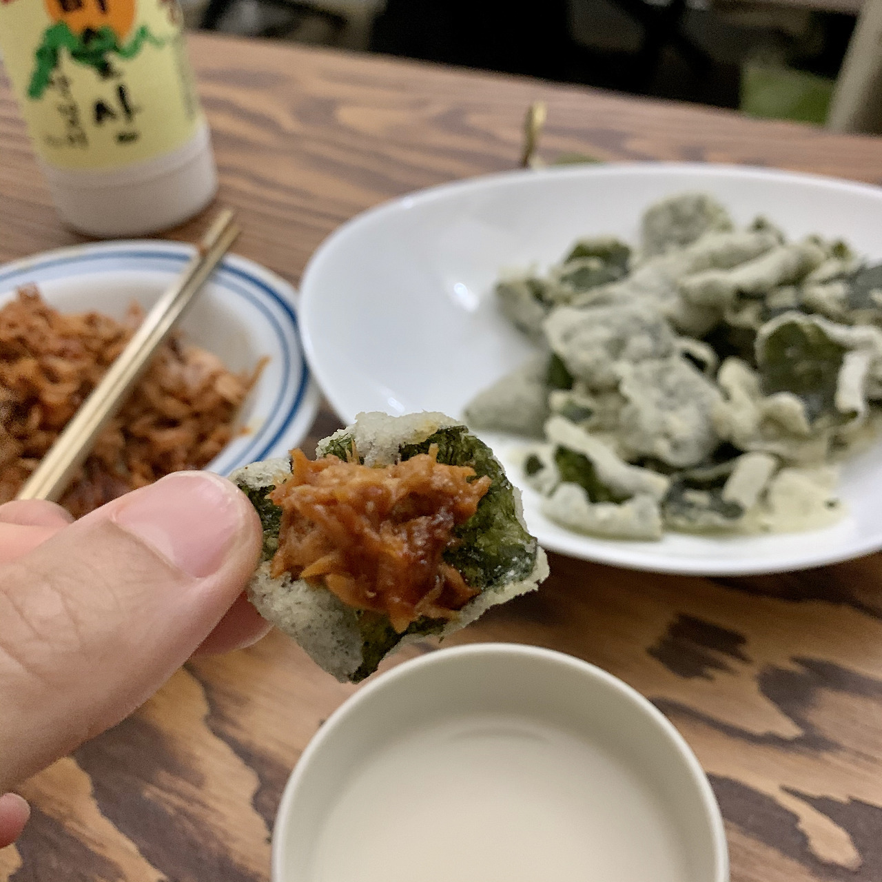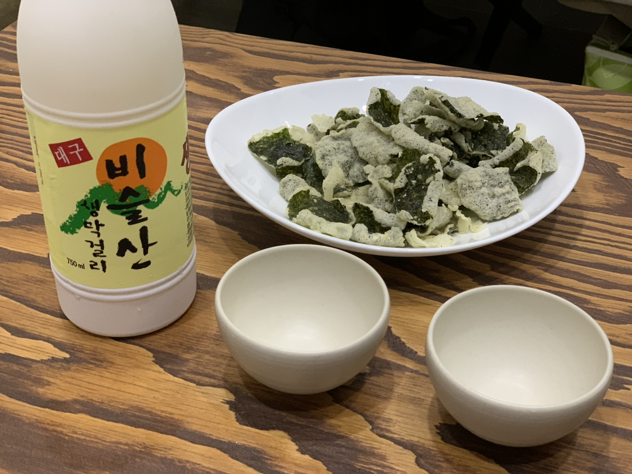 작은 병 하나만 마실 줄 알았던 우리는 아빠 드릴까 했던 큰 병 하나를 더 깠고, 안주로 가볍게 김부각만 먹으려던 우리는 결국 참치에 비빔면 소스를 비벼 김부각 위에 올려 먹는, 일명 부각카나페라는 창조안주까지 해 먹었다. 한 잔 두 잔 어느새 알딸딸하게 취기 올라 솔직한 이야기를 나누었다.