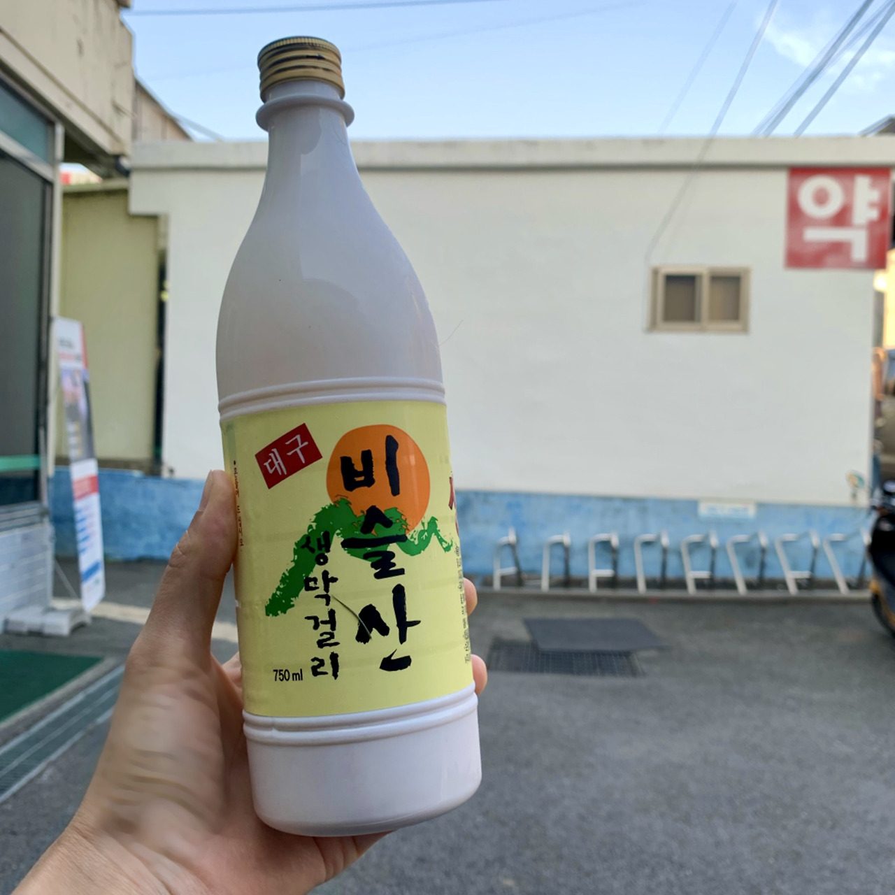 예전에 막걸리에 대해 브런치에 따로 글을 올렸듯이 남편과 나는 곡주러버이다. 등산크루 쓰담쓰담의 시작도 '등친막친(등산으로 친해지고 막걸리로 더 친해진 사이)' 였으니. 신혼집에 산 이후로 전국팔도 막걸리 병을 모으고 있는 게 어언 20병쯤 되니. 한달에 4번 만나는 주말부부가 매달 3병씩은 먹는 꼴. 오랜만에 막걸리를 마셨다. "비슬산에 갔으니 비슬산막걸리를 마셔야지?" 농담처럼 던지고 인터넷으로 찾아봤는데 진짜 있네. 등산을 마치고 집에 오는 길 현풍 하나로마트에서 두 병을 집어 왔다.