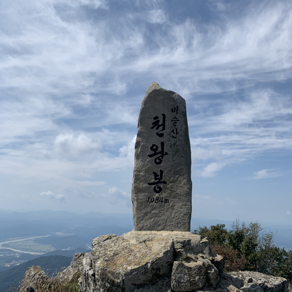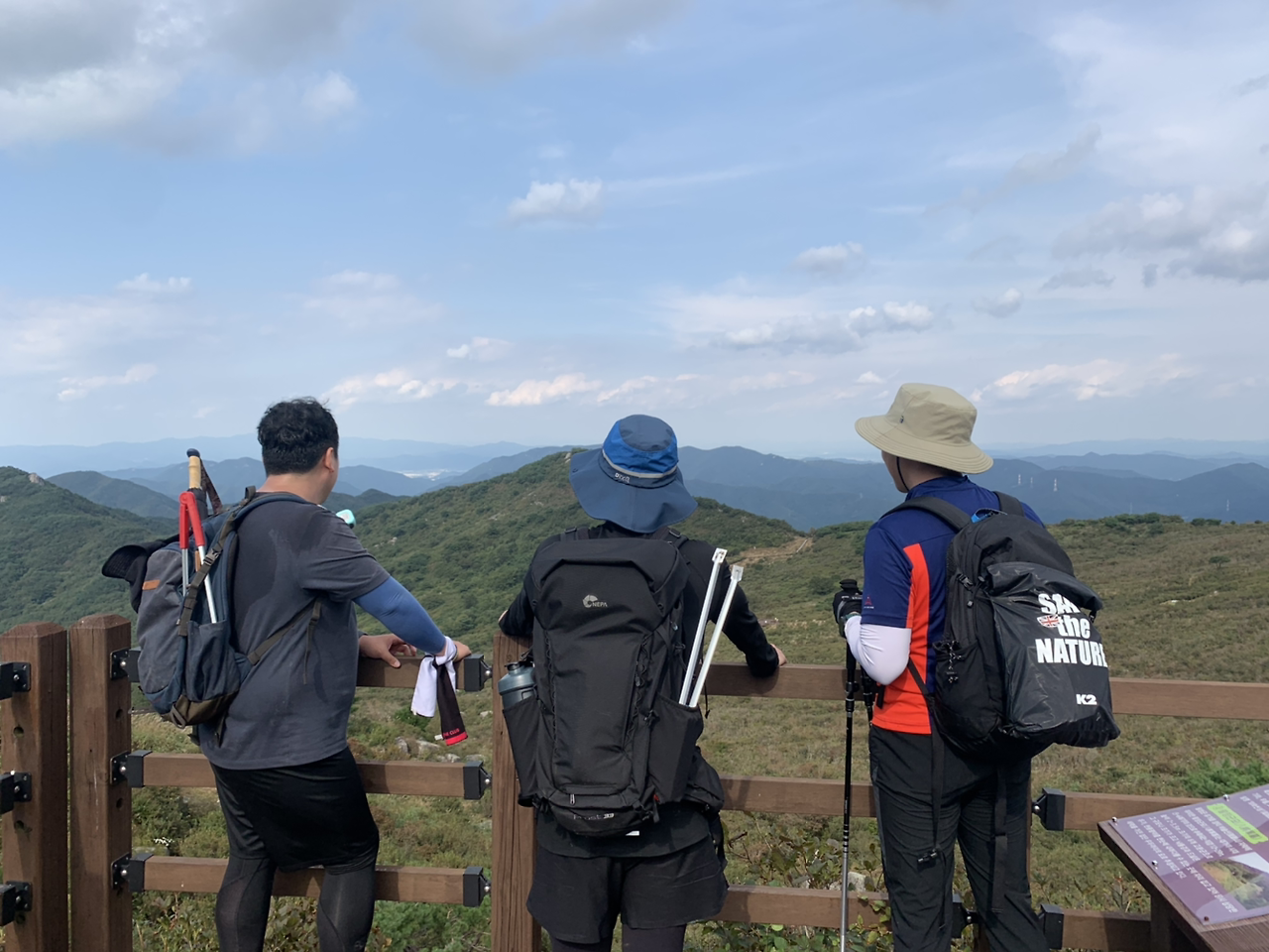 흐드러지는 억새와 함께 선명한 하늘이 드리워진 고지는 눈부셨고 비석에 힘 있게 쓰인 천왕봉 글씨는 멋졌다. 지난 밤 내 단골손님이 쥐어주신 샤인머스켓과, 우리가 사간 김밥, 부산팀이 가져온 육개장으로 점심을 먹고 그 힘으로 내려올 땐 하산왕 실력 제대로 발휘했다. 산을 혼자일 때와 둘이서 오를 때, 그리고 여러 사람들과 오를 때의 차이를 생각했다. 혼자 산행을 할 땐 오롯이 자연과 호흡에 집중할 수 있고 사색의 시간을 가질 수 있는 이점이 있는 반면 눈앞의 멋진 뷰를 공감하고 나눌 수 없다는 점이 단점이다. 그리고 한 가지 더, 무섭다(...) 하산왕하면서도 혼자 멀찍이 앞서가다 보니 영화 곡성이 생각나면서, 문득 아무도 없는 산이 무서워졌다. 그리고 둘일 때. 서로에게 의지도 되고 좋은 경관을 같이 바라볼 수 있다. 그러나 페이스나 코드가 정말 잘 맞지 않으면 더 힘들다. 그리고 여럿일 때. 대화가 끊이질 않는다. 웃을 일이 많다. 즐겁다. 다소 TMI가 남발한다. 이따금 조용히 오르내리고 싶어지기도 한다. 그리고 하고 싶은 걸 다 할 수가 없다.(예를 들면 이번에 힘들어하는 멤버나 시간에 좇기는 멤버를 고려해 봉우리 하나는 못갔다.) 어쨌든 혼자서 올라봐야 둘이나 다수가 좋은 것도 알고, 여럿이서도 올라도 봐야 또 장단점을 알 수 있다는 것은 분명하다.