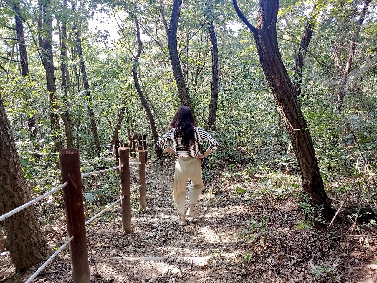 마침 용암산성이 근처에 있길래 가을 단풍철에 오면 좋다 하지만 미리 맛보기 삼아 들렀다. 입구에 차를 댔고 용암산성까지 1km라 쓰인 표지판. 가벼운 산책길을 생각했지 등산코스일 줄은 몰랐지. 길에서 만난 사람들 모두가 등산복 차림의 등산객들이었다. 이럴 줄 모르고 왜 하필 둘 다 예쁜 옷 입고 왔나(...) 경사가 꽤 가파른 탓에 속도조절을 해봐도 땀은 줄줄 흘렀다. 오르고 또 올라 도착한 정상 무렵엔 기대한 성벽이 없었다. 서울에서 좋아하던 낙산산성 같은 곳을 만나나 설렜는데. 나중에 알고 보니 용암산성은 자연적인 토성이라고. 우리가 흔히 아는 석성이 아니었던 것이다. 내려오는 길, 노란나비가 내 주변을 계속 맴돌길래 "내가 꽃이라서 따라오나 봐" 주접을 떨었다. 반면에 자꾸 모기가 꼬인다는 그에게는 넌 땀냄새 나서 그런 거라 짓궂게 장난쳤고. 하산왕 오늘 실력 발휘 못하는 건 옷 때문인 거라고. 그럼에도 긴 바지 접어 올려 날아다녔다. 앞산고라니 누가 말리랴^^