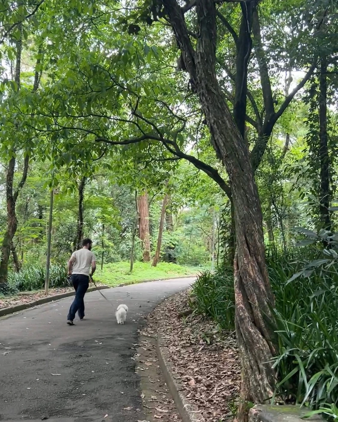 상파울루에 있는 Aclimacão 공원에는 중앙에 큰 호수가 있고 그 주위로 동그란 산책로가 있다. 목요일 아침인데도 호수를 옆에 낀 산책로에는 사람이 너무 많아 두 번째 산책로를 걸었다. 이 산책로는 사람 많은 주말에도 사람들이 잘 다니지 않는 산책로다. 조용한 산책로는 양 옆으로 크고 하늘까지 뻗어 있는 초록 나무가 나란히 서 있다. 어제 비가 한 바탕 쏟아져서 오늘 더욱 숲향기가 짙다.