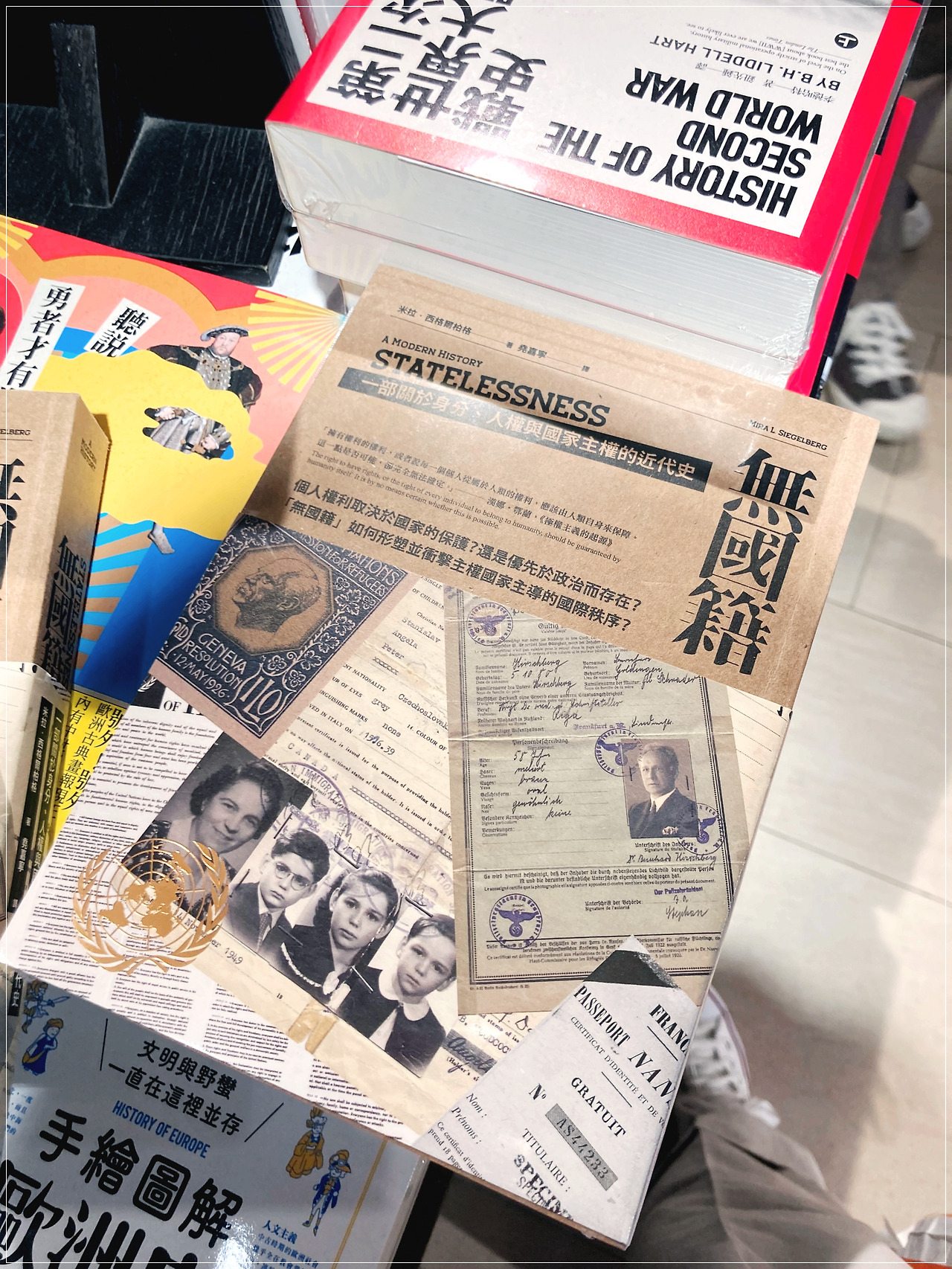 그밖에 최근 읽은 히틀러 <나의 투쟁>이 생각나서 찍었고(전쟁 코너에 있군요...), <무국적>이라는 타이틀과 표지가 인상적이어서 찍은 사진도 있습니다. 그럼 이곳에서는 책을 안 샀는가!! 아니요. 샀지요. 무엇을 샀느냐 하면 <장자> 관련 책을 샀습니다. 네? 장자요? 네에, 그 <장자> 맞습니다. 노공맹장순한비묵...자 가운데 장자를 제일 좋아합니다.