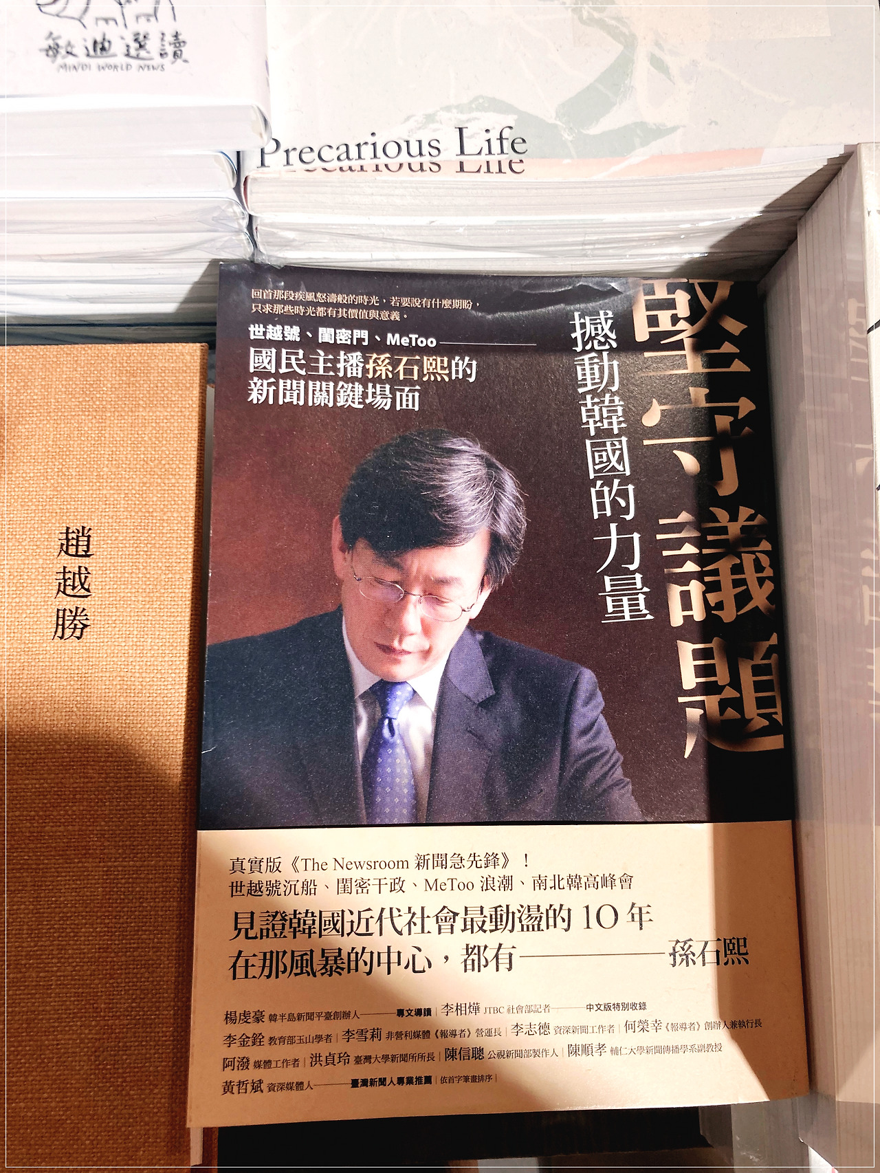 <불평등의 교육>이라는 책은 거의 살 뻔했습니다. 한때 이 주제에 관심이 많아서 관련 자료들을 모았거든요. 읽을 수만 있다면, 어떤 논의들이 오가고 있는지 한번 확인해 보고 싶었습니다. 비판교육사회학적 접근이라고 하니 더욱 관심이 갔지요. 하지만 정신 차리고 내려놓았습니다. (책 수집은 그만...) 손석희 님 얼굴이 나온 책은 신기해서 찍어 보았습니다. 한국에 나온 저서들을 본 적 있는데 번역된 것 같기도 하고요. 그리고 저의 사랑, 안네 프랑크 관련 책들입니다.