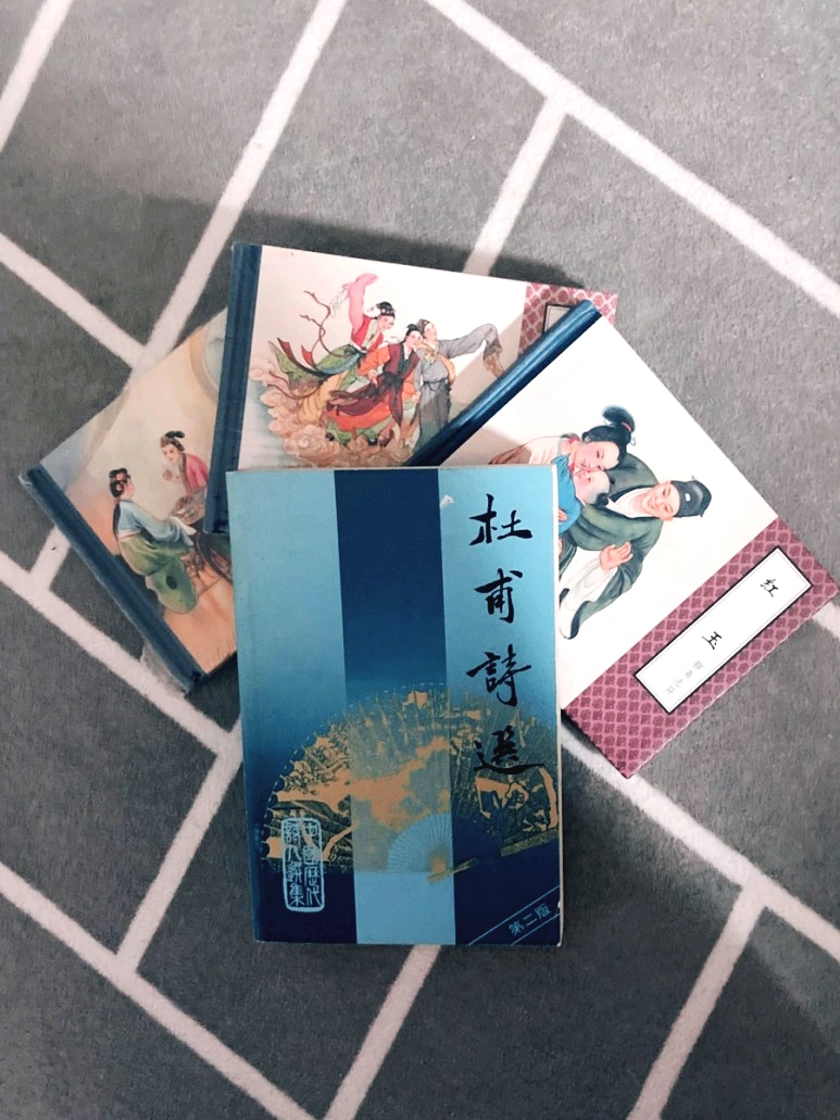 아니, 이게 다 뭔가!! ...라는 느낌이 드신다면 맞습니다. 일단 뭔지 알고 산 책은 <두보시선>뿐이고요. <두보시선>은 보자마자 내적 흥분을 하고 휘리릭 펼쳐 보았습니다. 비록 이 책에서 아는 시라고는 <춘망>뿐이었지만 다시 자세히 보면 몇 편 더 나올지 모른다는 생각에 질렀습니다. 그리고 나머지 세 권은 누가 봐도 고전소설의 느낌이 나지요? 처음에는 책이 작고 포장도 되어 있어서 이건 동화책인가? 하고 앞뒤로만 슬쩍 봤습니다. 그러나 궁금한 건 물어봐야지요. 사장님께 여쭈니 어린이용 책은 아니고 어른들을 위한 소설 같은 거라고 했습니다. 그러면서 포장 없는 샘플 책을 하나 보여 주셨는데 그림 밑에 설명이 되어 있는 제법 괜찮은 책이더라고요? (내용은 하나도 모름 주의) 또 반해 버려 가지고 사 왔습니다. 권당 5,000원꼴이었어요. 지금 뜯은 책은 사진의 가장 오른쪽에 있는 <홍옥>이라는 책인데요. 어제 이 책을 다시 들여다보다가 깨달았습니다.