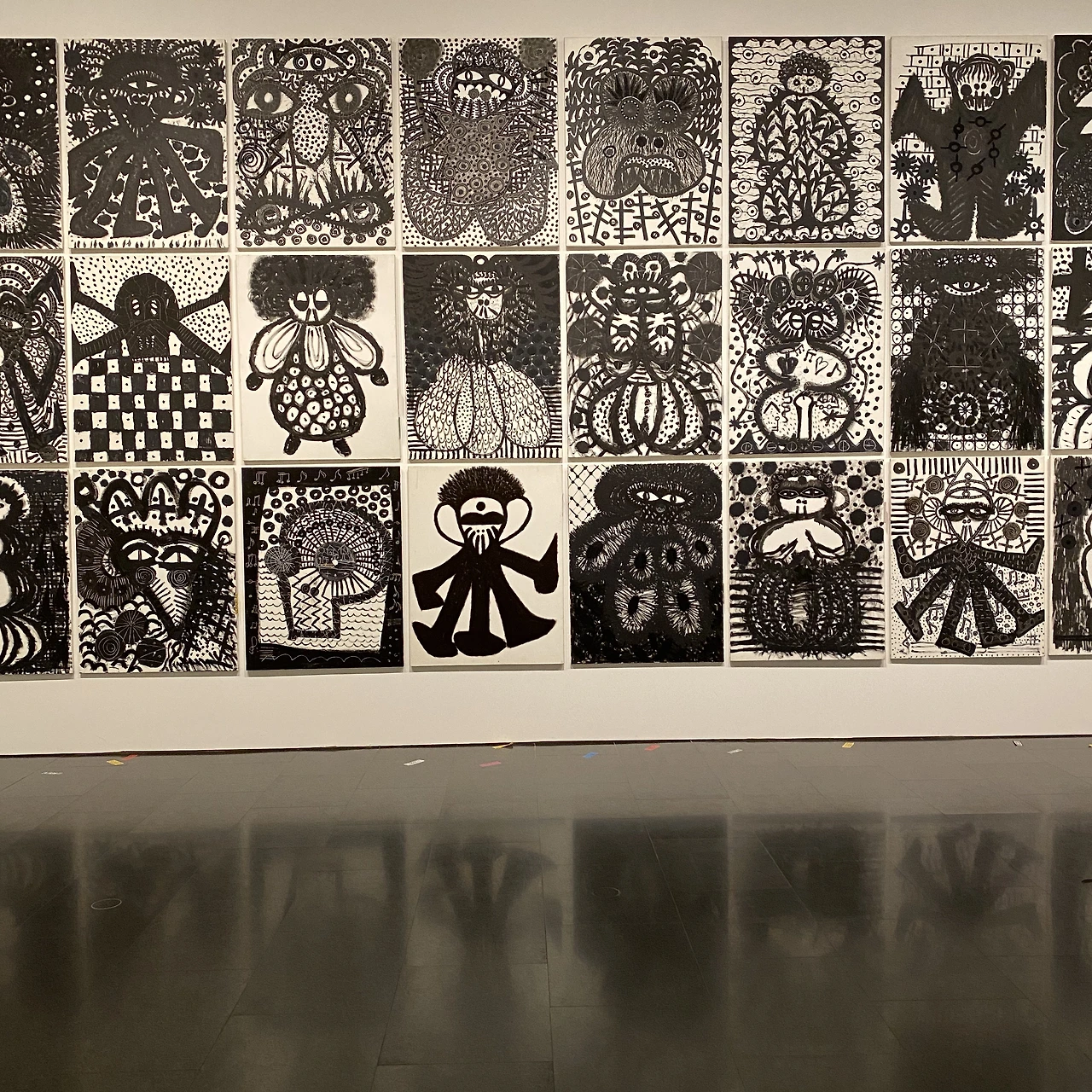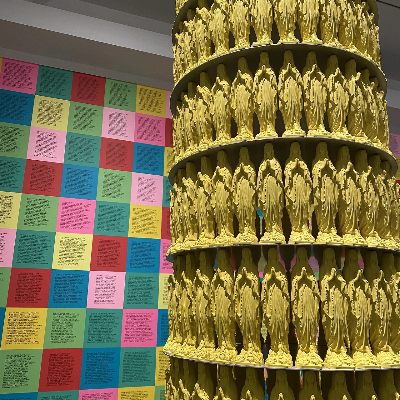 오디오 가이드는 어플로 써야했는데 제가 어플을 쓸 수 없어서 가이드를 하나도 못들었어요. 영문 팜플릿은 수량이 없었고 온통 에스파냐 해석뿐이라 작품명 조차 제대로 읽을 수 없었습니다.(눈물) 그냥 정말 관람자의 입자에서 "아아..이런...의미일까나?ㅋ" 하면서 아는척 하는게 전부였어요. 많이 아쉬웠어요. 꼭 해석하고 싶은 작품들이 많았는데 이름조차 기록하지 못했으니... 참고로 윗사진의 벽면에는 빼곡히 영문 문구가 적혀있어요. 감정의 묘사에 대한 표현들인데요 모든 타일에 적혀진 문구가 다 다릅니다.