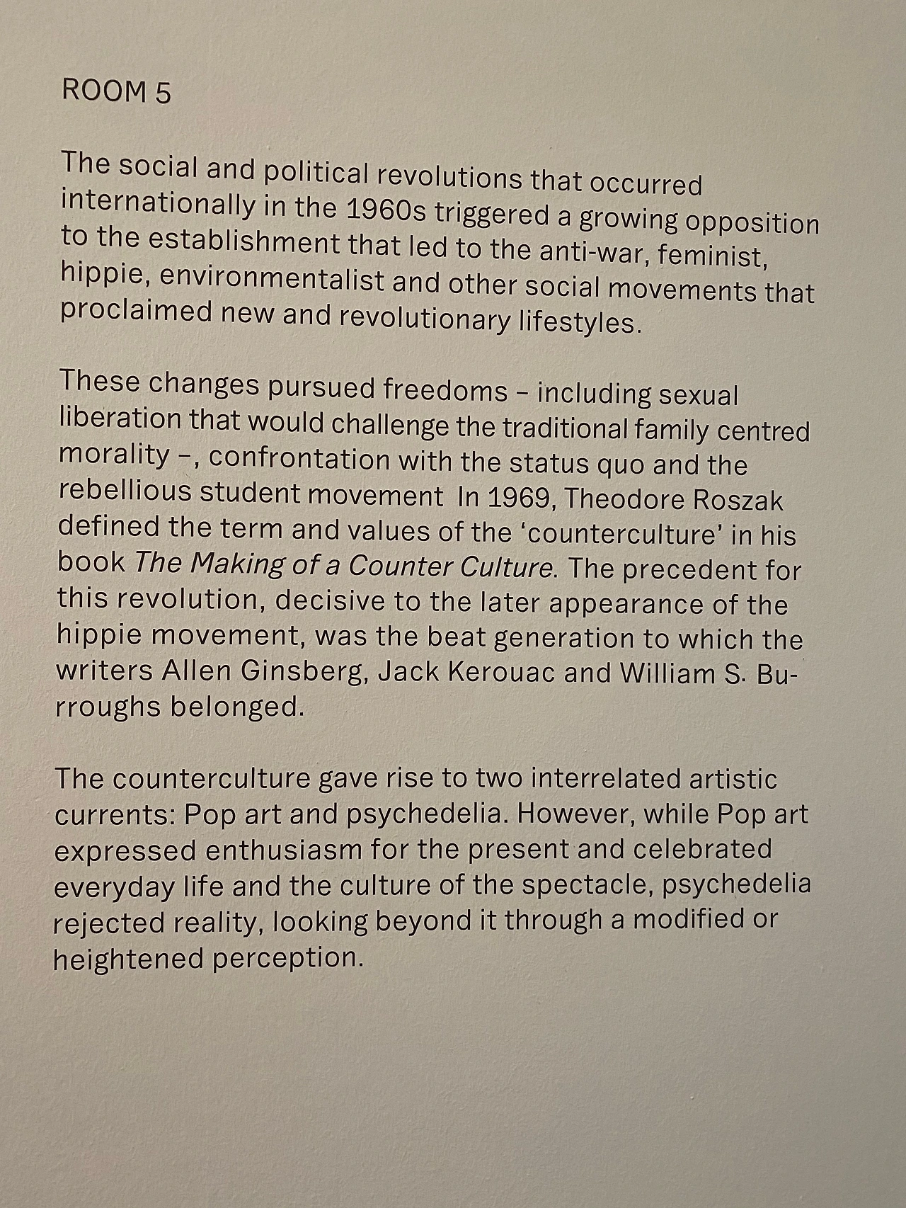 왜 그럴까요? 모든 현상에는 이유가 있듯, 예술의 형식 변화에도 분명한 사유가 존재합니다. 전쟁의 종결 후 산업발달을 이뤄내며 사람들의 라이프 스타일은 다양해졌습니다. 그리고 자유 민주주의와 자본주의가 세상의 다수가 됐죠. 이제 사람들은 전쟁에 대한 비판과 두려움을 보다 더 자유롭게, 다양한 색채로 말할 수 있게 됐습니다. 사회적이고 환경적이며 정치적인 움직임이 이러한 변화와 함께 가속됐습니다. 두번 다시 존재하지 말아야할 전쟁을 경계하는 반전쟁적인, 이념의 갈등과 인권의 유린을 타파하기 위한 페미니즘적인, 그 외 여러가지 작품들이 탄생했어요. 대중문화도 당연 발전합니다.