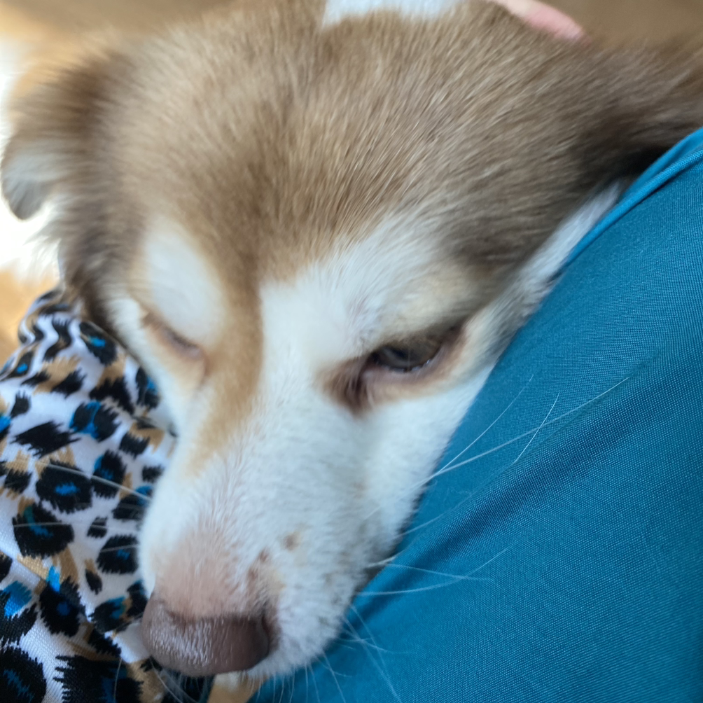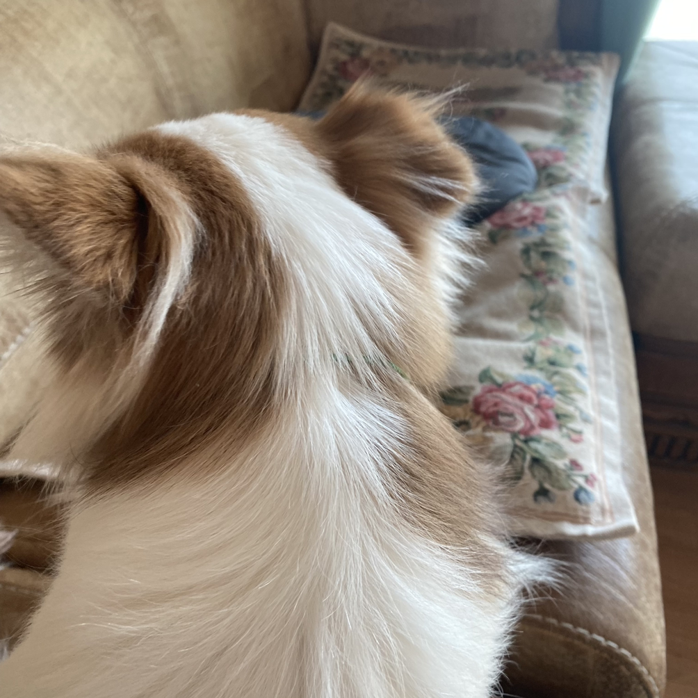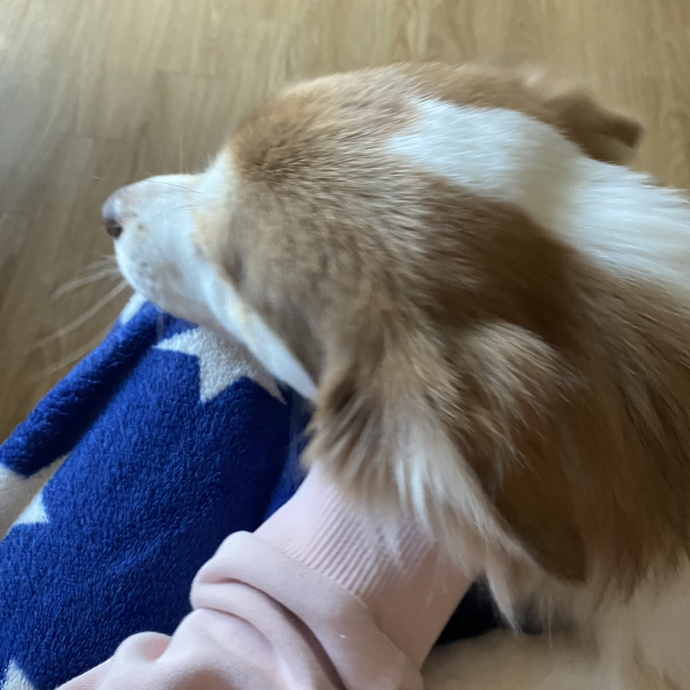 앞에 앉은 저를 구경하다가 기억 모양으로 잠들었어요.