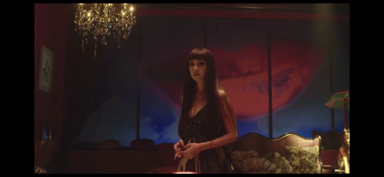 영화의 지배적인 색감입니다. 영화 정말 빨개요. 특히 리리코의 감정이 가장 많이 표현되는 집을 표현하는 색감입니다. 그녀는 집에서도 빨간 홈드레스를 입고 새빨간 침실 등을 켭니다. 하지만 집에 있음에도 불구하고 단 한순간도 편안하지 못합니다. '인기를 잃으면 어떡하지, 사랑을 받지 못하면 어떡하지.' 고민 뿐입니다. 분명 탁트인 창이 있어야할 구조인데, 거대한 입술 페인팅이 있습니다. 심지어 새빨간 입술이죠. 집에서도 세간의 관심과 가십으로부터 자유롭지 못한 그녀의 삶을 보여줍니다. 대중의 입안에서 굴리는 대로 굴러갈 수밖에 없는 그녀의 운명처럼.
