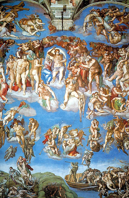 지옥과 연옥, 남은 건 천국입니다. 대충 천국을 떠올려보라하면 우리는 푸른 이미지를 많이 상상합니다. 왜냐면 지옥은 지하에, 천국은 하늘에 있다고 생각하니까요. 하늘의 푸르고 청명한 이미지로 천국을 떠올리는게 자연스럽습니다. 저는 이 영화에서도 푸른색감=천국으로 정의했습니다. 하지만 <헬터스켈터>에 '유토피아'를 뜻하는 천국은 없어요. 구원의 공간이 아닌, '신의 영역'을 의미하는 천국일 뿐입니다. 절대적인 힘을 갖고 있으며 리리코의 마음을 초월하는 영역이요. <최후의 심판> 작품을 보면서도 알 수 있어요. 비록 신들이 천국에서 내려오고 있긴하나 인간들을 구원하러 오는게 아니라 심판하러 오잖아요? 때로는 천국이 아름다운 유토피아가 아니라 냉혹하고 엄격한 공간도 될 수 있어요.