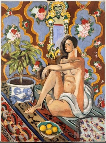 색채 뿐 아니라 마티스는 패턴에도 영감을 받습니다. 위 작품은 마티스가 종종 보여주었던 '아라베스크(이슬람식)' 느낌이 물씬나는 작품입니다. 마티스는 1차 세계대전 이후 프랑스 니스로 넘어와 오랜 시간을 보내게 됩니다. 전쟁 후 찾아온 여유와 평화 덕에 마티스는 다양한 실험을 할 수 있게 됐어요. 그때 오리엔탈리즘과 아라베스크가 마티스의 마음을 채우기 시작합니다. 동양풍의 강렬한 색감과 화려한 패턴, 아라베스크 특유의 카펫 패턴 등이 마티스의 작품에 종종 등장하기 시작하죠.