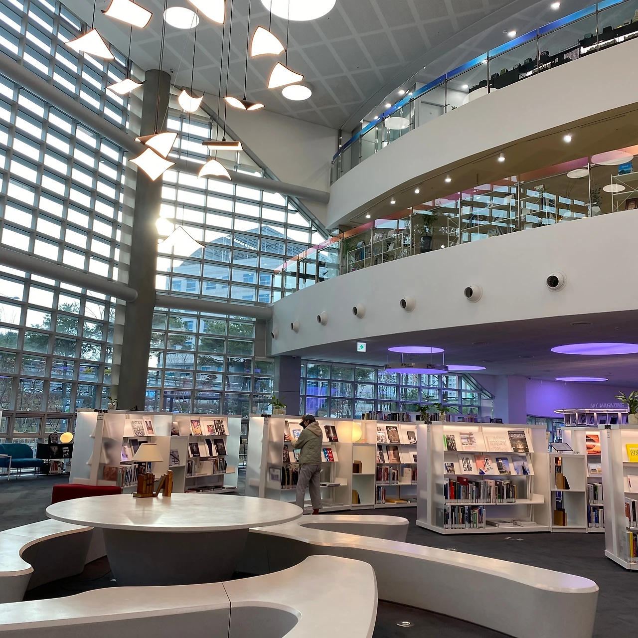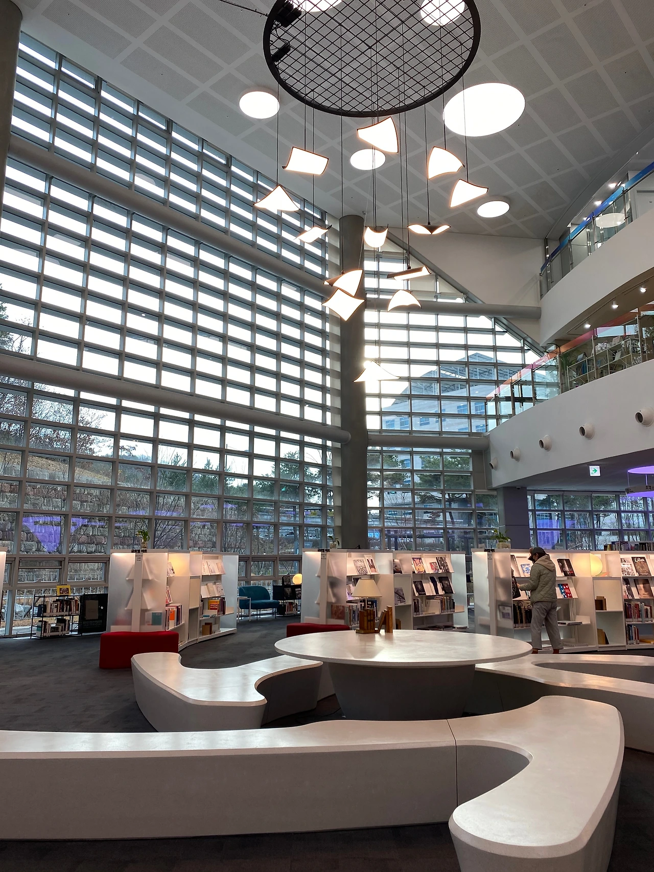 <사이코지만 오케이> 드라마 촬영지로 유명한, 저의 심장을 뛰게하는 미술을 테마로한 '미술 도서관'에 들렀기 때문입니다. 지금도 여기서 열심히 브런치를 쓰고 있어요. 3층 규모의 도서관인데 일반적 도서관과 달리 책장 사이의 공간감이 널찍하고 디자인이 참 예뻐요. 해가 잘 드는 시간에 왔다면 유리창 채광이 어마어마했을 듯 합니다. 너무너무 아름다워요.
