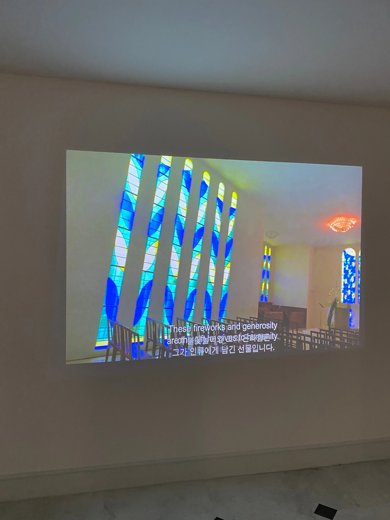 컷오프 체험까지 야무지게 하고 나면 마지막 섹션에 도착하게 됩니다. 마티스는 죽기전에 로사리오 성당 건축을 의뢰받게 됩니다. 가우디가 규모와 디테일로 빼어났다면, 마티스는 역시나 색채와 조화로움이 뛰어난 성당을 탄생시킵니다. 마티스는 외부 디자인 뿐 아니라 내부 인테리어부터 아주 자잘한 부분까지 전부 의뢰를 받아 정성스레 로사리오 성당을 만듭니다.