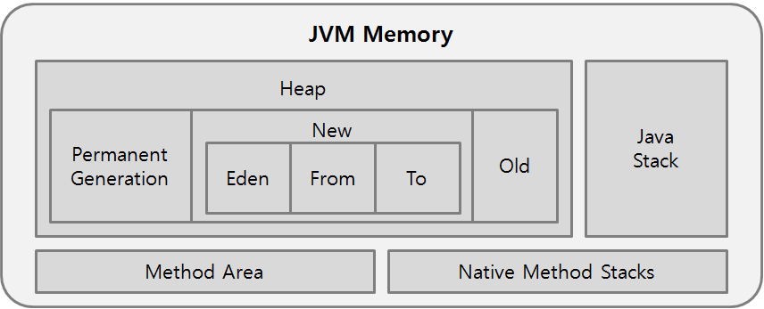 JVM의 메모리 구조는 메서드, 스택, 힙 영역이 있다.