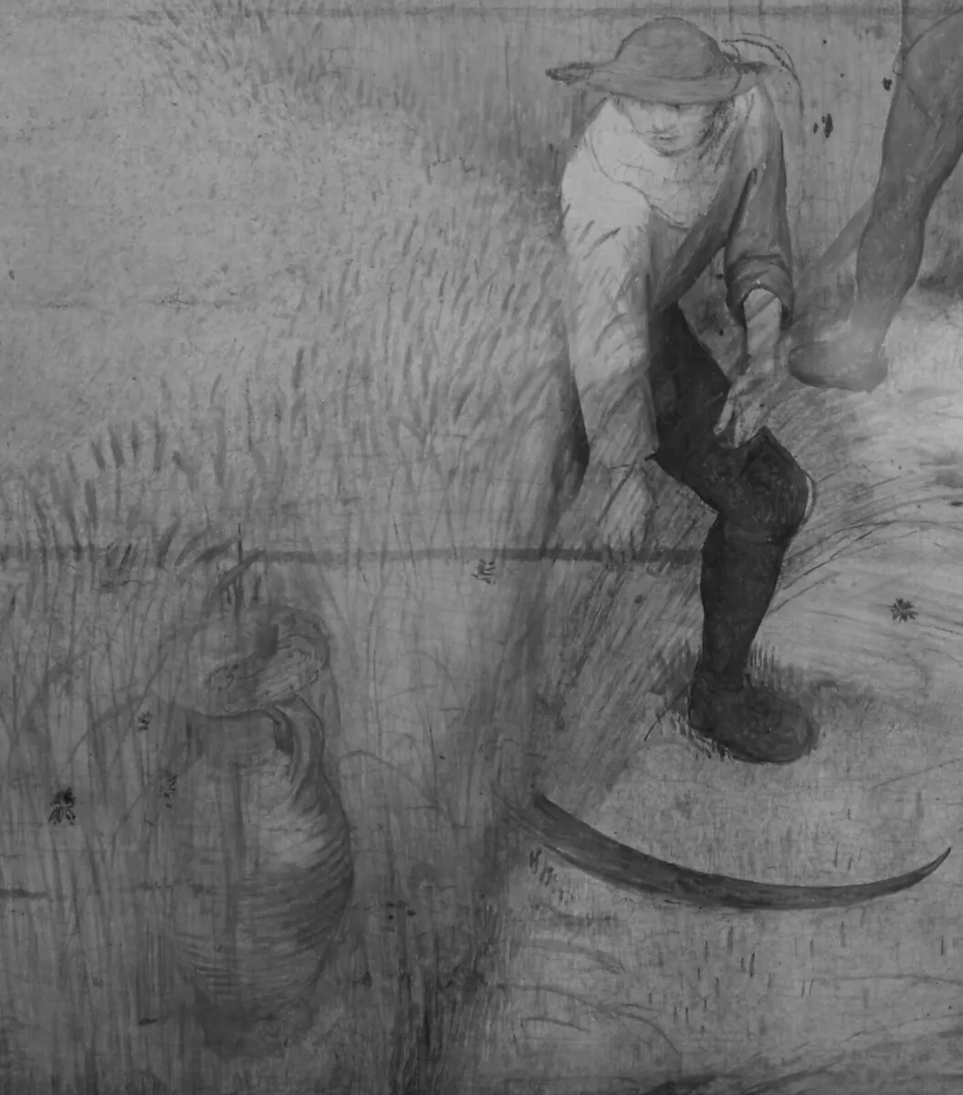 그리고 그 한가운데, 우리는 피터르 브뤼헐(Pieter Bruegel the Elder)의 《곡물 수확(The Harvesters)》(1565) 속으로 들어간다.