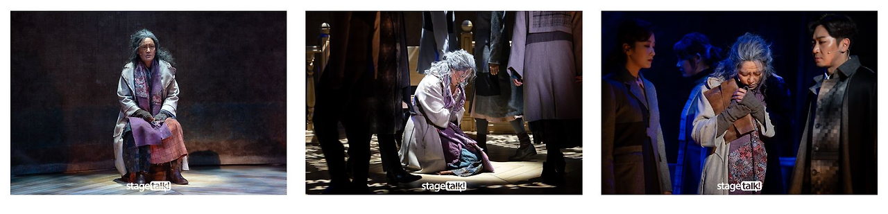 그러나 여기 그 세계에 문학적 상상력을 덧입혀 탄생한 뮤지컬이 있습니다. 바로 뮤지컬 <호프>입니다. 실화의 주인공 이름 Hoffe 와 희망을 뜻하는 Hope, 같은 발음을 이용한 이 제목은 상상된 이야기를 통해 얻고자 했던 목표와도 비슷하다는 생각을 합니다. 마지막 공판이 진행되는 법정을 배경으로 시작되는 이 뮤지컬에는 늙고 더럽고 괴팍한 호프와 그녀가 가진 유작 원고가 의인화된 K가 중심이 됩니다. 법정에서 그녀에게 날아오는 질문들은 그녀로 하여금 오랜 과거의 몇 몇 장면으로 되돌아가게 만듭니다. 그녀의 회상 속에서 우리는 법정에서는 말해질 수 없는 구체적 상황들을 목격하게 됩니다. 개인의 삶에는 법의 세계에서 통용되지 못하는 말들이 너무나 많습니다. 명백한 증거들로 입증하지 못하는 사실들은 고려될 수 없습니다. 법이 구축한 한계 지어진 장소에서 개인은 언제나 취약한 존재로 서 있습니다.