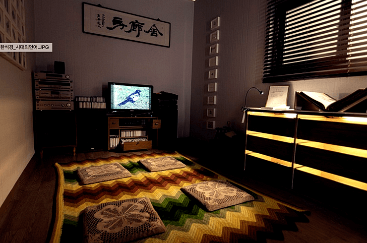 <시언>의 공간은 작가의 외할아버지 ‘시언’의 수집품들로 가득합니다. 작가의 외할아버지는 고향 땅을 밟을 수 없고, 고향에서의 삶을 더 이상 영위할 수 없다는 사실을 직면해야 하자, 집착적으로 북한과 관련된 수집품들로 방을 채우기 시작했다고 합니다. 때문에 어린 시절 작가는 외할아버지의 방에 들어가 때마다 ‘북한 같다’는 생각을 떨칠 수 없었다고도 하죠.