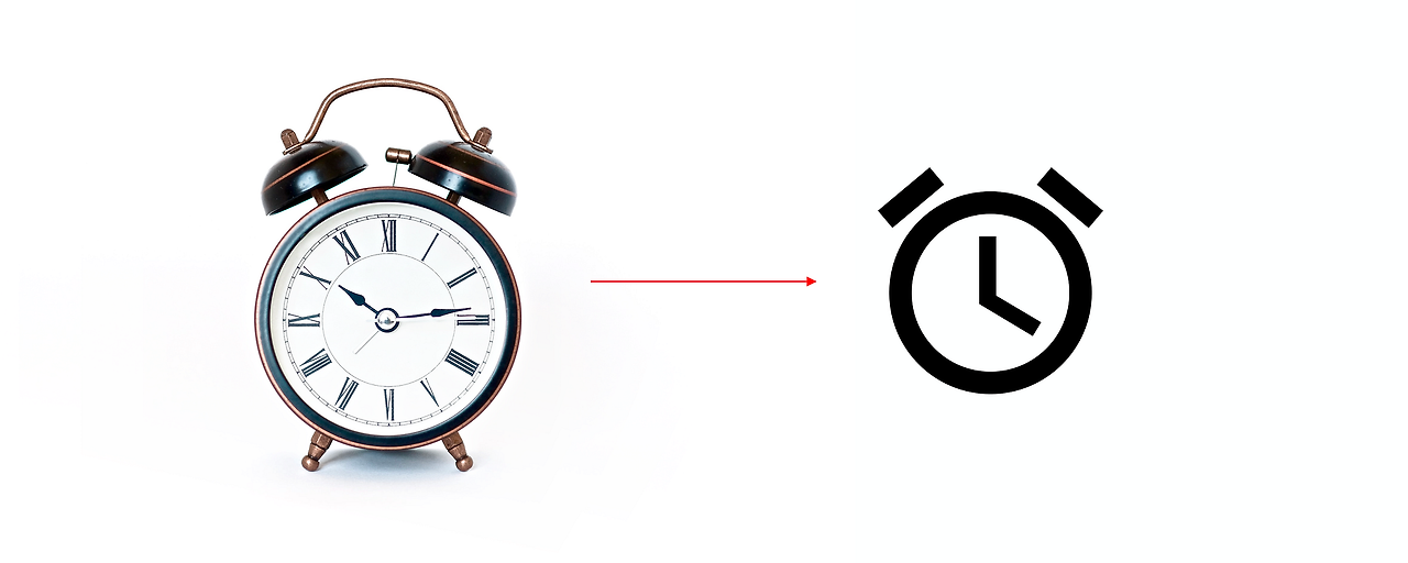 어떤 경우에는 은유가 문자 그대로입니다. 머티리얼의 알람 아이콘은 벨이 있는 고전적인 기계식 알람 시계를 표시하며, 우리가 기대하는 기능을 그대로를 수행합니다. 즉, 우리를 제시간에 깨우기 위해 벨이 울립니다.