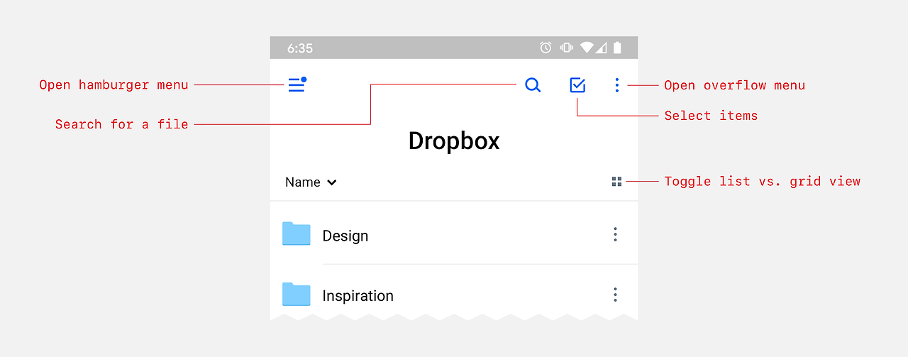 Google Material의 단순하고 장식이 없는 스타일은 브랜드의 실용적인 특성을 전달합니다.
